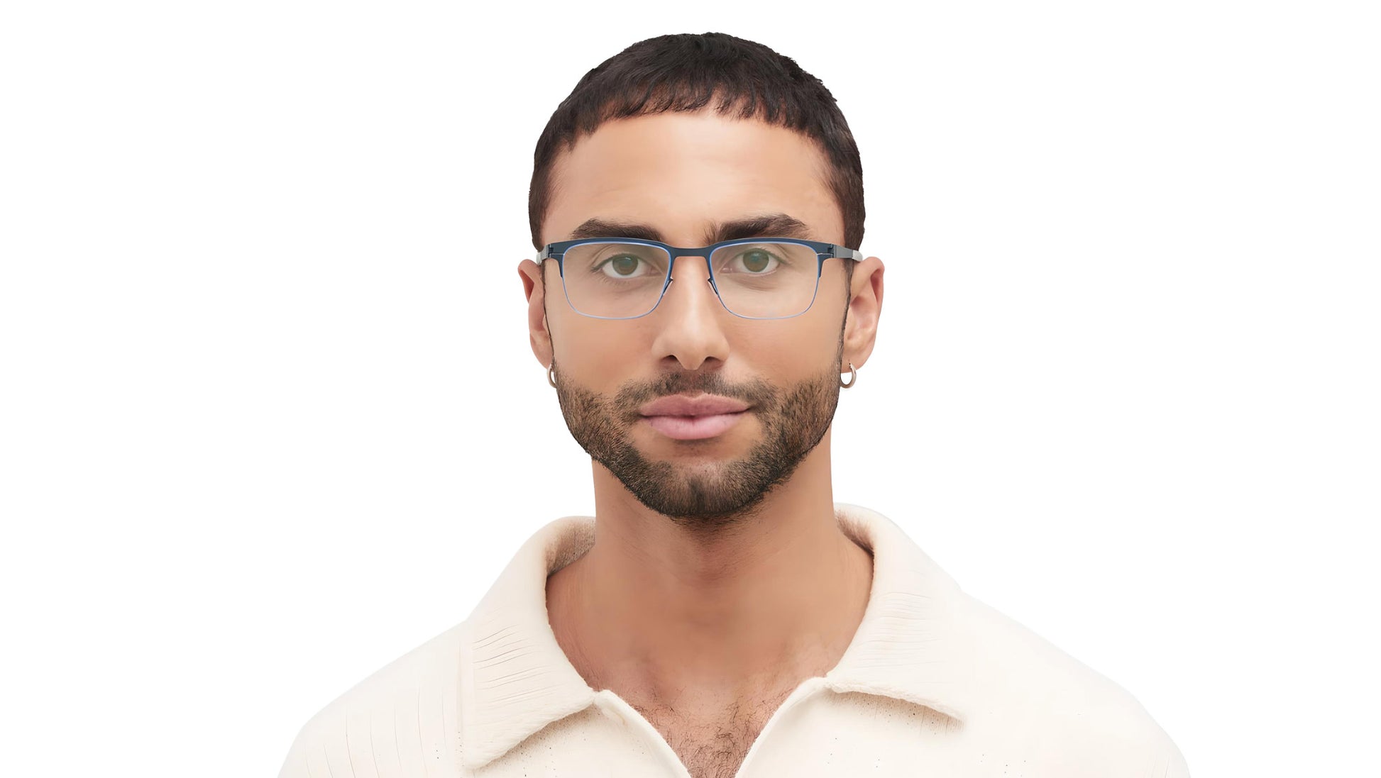 Mykita HARRISON 514 glasses for men, featuring indigo / yale blue squared stainless steel frame and demo lenses. The MYKITA NO1 collection embodies the essence of contemporary design and Berlin craftsmanship, with ultra-lightweight stainless steel frames that set new standards in elegance and functionality. Each model features patented spiral hinges for flexibility, silicone temple tips and nose pads for superior comfort, and a fully adjustable frame for a perfect fit. The collection comes with a signed case and cleaning cloth, a testament to the meticulous attention to detail. Brand line: NO1. Style code: 10081238. Color code: 514. Made in Germany. Authorized Mykita online reseller. Your glasses will include the original case and accessories and are covered by a 12-month global warranty.