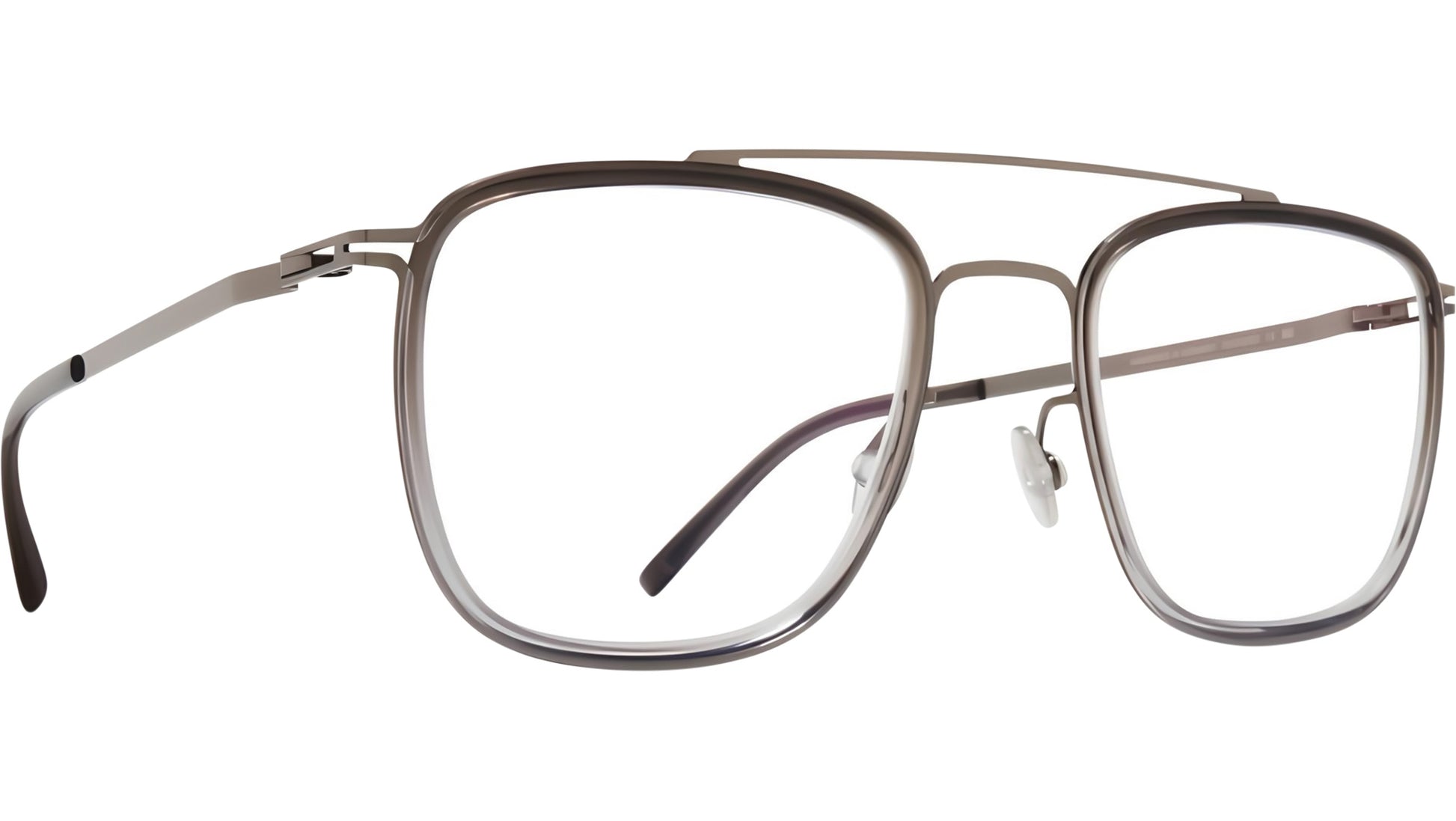 Mykita JEPPE C899 glasses for men and woman, featuring shiny graphite / grey gradient squared stainless steel frame and demo lenses. The frames of the ACETATE RINGS collection are made of Acetate Renew, a sustainable material that reflects responsible, high-quality design. Each frame, with its elegant lines and patented innovations, is handcrafted in Berlin, guaranteeing durability, comfort and refined aesthetics. The interplay of high-tech elements and acetate gives each model an inimitable look. Brand line: ACETATE RINGS. Style code: 10077262. Color code: C899. Made in Germany. Authorized Mykita online reseller. Your glasses will include the original case and accessories and are covered by a 12-month global warranty.