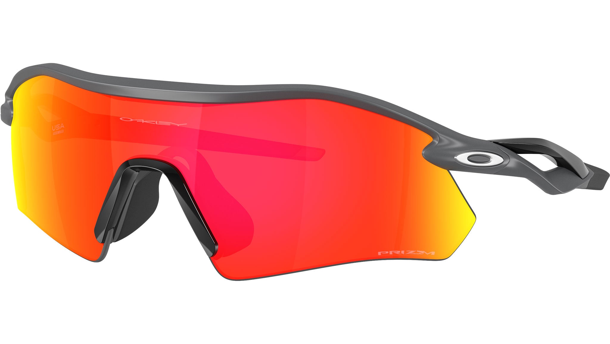 Oakley unisex sunglasses model OO9495D 03 featuring matte carbon full rim nylon frame and polycarbonate prizm ruby lenses. The Oakley Radar Plate represents the next generation of sport performance eyewear, merging the brand’s iconic aesthetic with modern enhancements driven by athlete feedback. Expanding on the renowned Radar® lineage, this model features a reimagined bridge for an improved field of view, along with a lightweight O Matter™ frame accented by elliptical metal icons. Unobtainium® nosepads and earsocks provide a secure, non-slip grip that adapts with moisture for lasting comfort and performance. Outfitted with Oakley's high-definition shield lens technology, Radar Plate is available with Prizm™ lenses for heightened color, contrast, and detail, and offers polarized and Iridium® options. For precise vision and consistency, it is also compatible with Oakley Authentic Prescription Lenses.Universal fit. Suggested size: L. Frame line: Sport Performance. Brand code: 0OO9495D. Color code: 03. Authorised Oakley Online Reseller. Your glasses will include the original case and accessories and will be covered by 12 month global warranty.