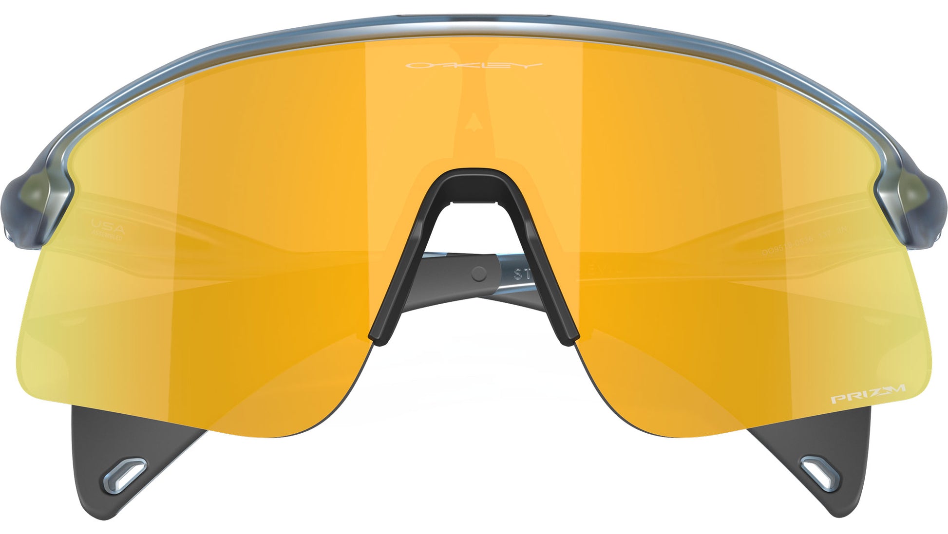 Oakley Stunt Devil S unisex sunglasses model OO9518 951805 featuring matt transparent abyss full rim nylon frame and polycarbonate prizm 24k lenses. Built to match the intensity of high-performance athletes, the Oakley Stunt Devil delivers uncompromising fit, grip, and comfort through its advanced design. Featuring Oakley’s HyperGrip™ Technology, the flexible earsocks increase the frame's contact with the head, ensuring exceptional retention while evenly distributing weight for a balanced, ultra-light feel. The durable O Matter™ frame offers enhanced strength and flexibility, maintaining its shape without shifting or warping over time. Unobtainium® nosepads improve grip with perspiration, keeping the frame securely in place during peak activity. For a tailored fit, Stunt Devil includes two interchangeable nosepads, making it a go-to model for athletes who demand locked-in performance and all-day comfort.Universal fit. Suggested size: M. Frame line: Sport Performance. Brand code: 0OO9518. Color code: 05. Authorised Oakley Online Reseller. Your glasses will include the original case and accessories and will be covered by 12 month global warranty.