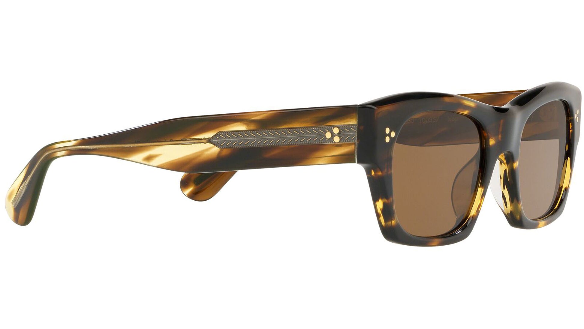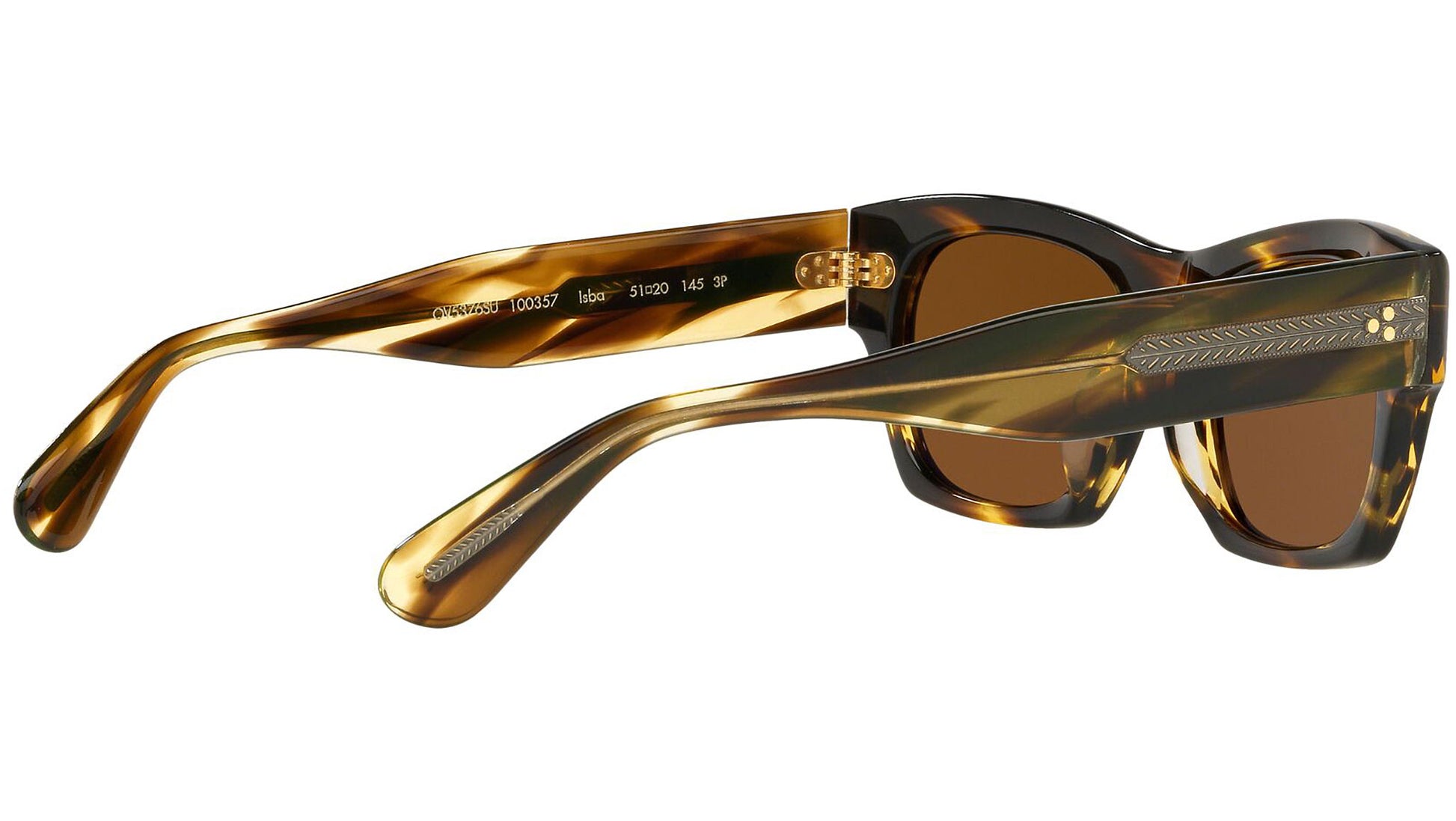 A 1960's-inspired style, the Isba is a distinctive Oliver Peoples aesthetic, originally defined by the iconic Tycoon and Ari frames. Featuring a strong bevel, this unisex sunglass includes demi-flat lenses and an embedded temple where the filigree is engraved on both sides.