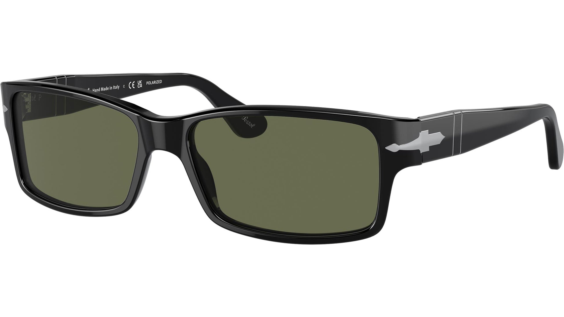 Persol PO2803S acetate men sunglasses, color code 95/58 in black with green lenses.
