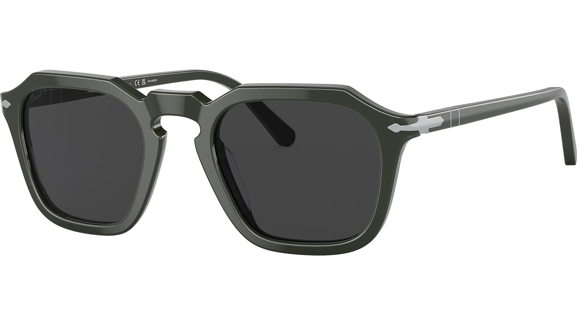 Persol sunglasses model PO3292S color code 118848 featuring dark green full rim acetate frame and glass polar black lenses. Meticulous attention to every intricate detail ensures distinct styles and practical solutions. Driven by an unwavering passion for skill refinement and an unrelenting pursuit of innovation, Persol embodies true quality. Embodying its evocative name, which signifies “for sun” this brand stands as a testament to a rich heritage of superior craftsmanship and excellence. Persol seamlessly blends aesthetics and technology, representing the epitome of handcrafted Italian manufacturing. Renowned for its timeless design and artistry, the brand has become a beloved choice within the realm of cinema.