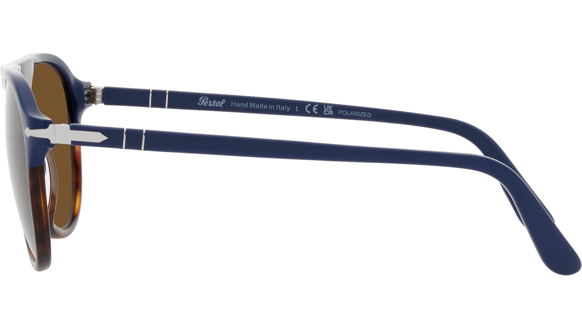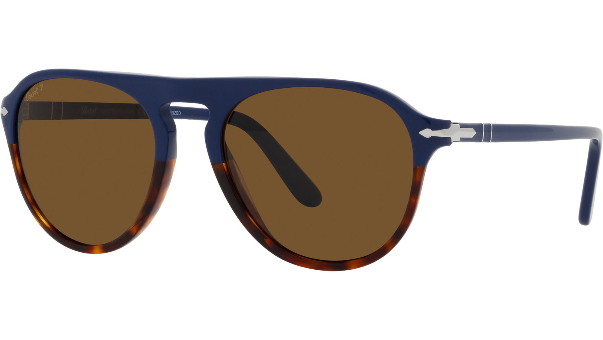 Persol sunglasses model PO3302S color code 117857 featuring blue full rim acetate frame and glass marrone polarizzate lenses. Meticulous attention to every intricate detail ensures distinct styles and practical solutions. Driven by an unwavering passion for skill refinement and an unrelenting pursuit of innovation, Persol embodies true quality. Embodying its evocative name, which signifies “for sun” this brand stands as a testament to a rich heritage of superior craftsmanship and excellence. Persol seamlessly blends aesthetics and technology, representing the epitome of handcrafted Italian manufacturing. Renowned for its timeless design and artistry, the brand has become a beloved choice within the realm of cinema.