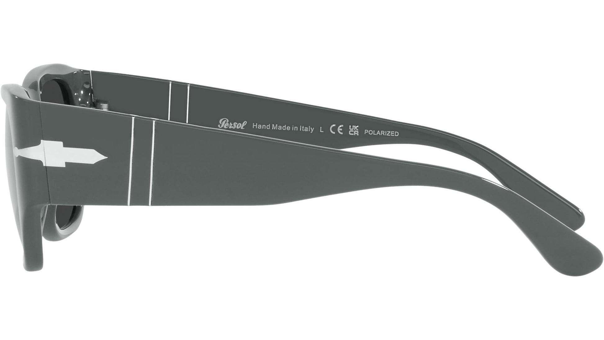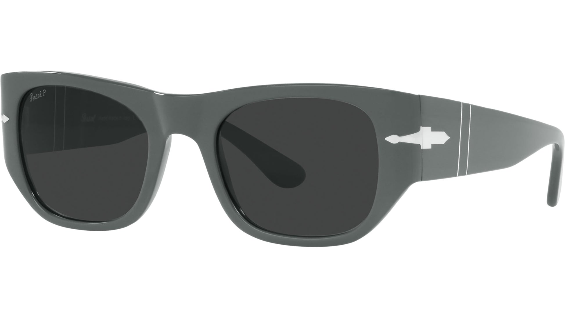 Persol sunglasses model PO3308S color code 117348 featuring grey full rim acetate frame and glass polarized black lenses. Meticulous attention to every intricate detail ensures distinct styles and practical solutions. Driven by an unwavering passion for skill refinement and an unrelenting pursuit of innovation, Persol embodies true quality. Embodying its evocative name, which signifies “for sun” this brand stands as a testament to a rich heritage of superior craftsmanship and excellence. Persol seamlessly blends aesthetics and technology, representing the epitome of handcrafted Italian manufacturing. Renowned for its timeless design and artistry, the brand has become a beloved choice within the realm of cinema.