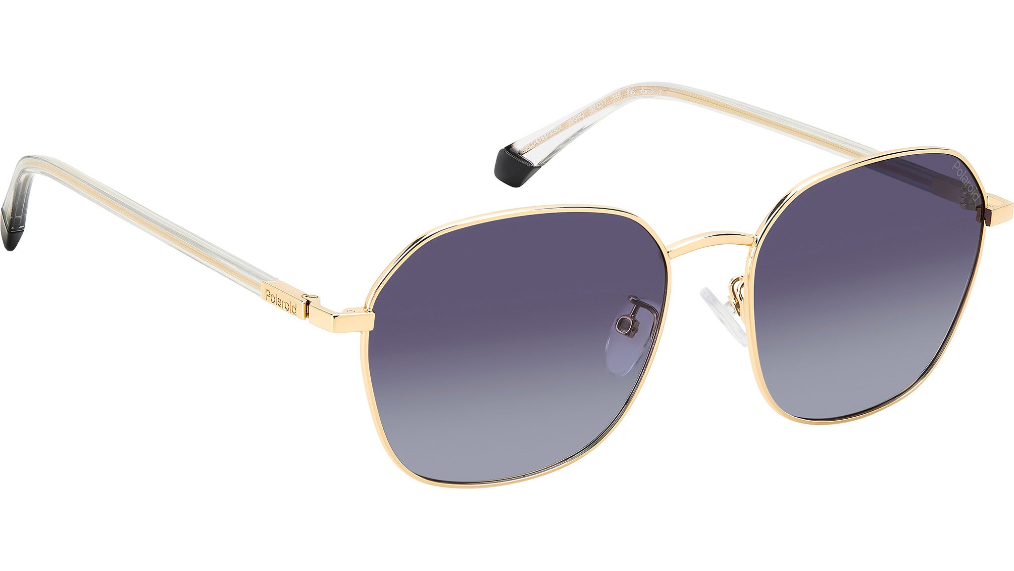 Polaroid PLD 4168/G/S/X J5G WJ sunglasses for men, featuring gold panthos metal frame and grey shaded polarized lenses. Exquisitely retro and essential Polaroid sunglasses. The stainless steel front takes on an unmistakable yet soft geometric form, which can be fitted with prescription or non-prescription lenses. The metal temples are finely engraved with the Polaroid logo, and covered in a long transparent sheath that lets the wire core show through. Lightweight construction, adjustable nose pads and a Global Fit ensure the impeccable comfort of these glasses. Brand line: Essential. Style code: 206711. Color code: J5G WJ. Authorized Polaroid online reseller. Your glasses will include the original case and accessories and are covered by a 12-month global warranty.