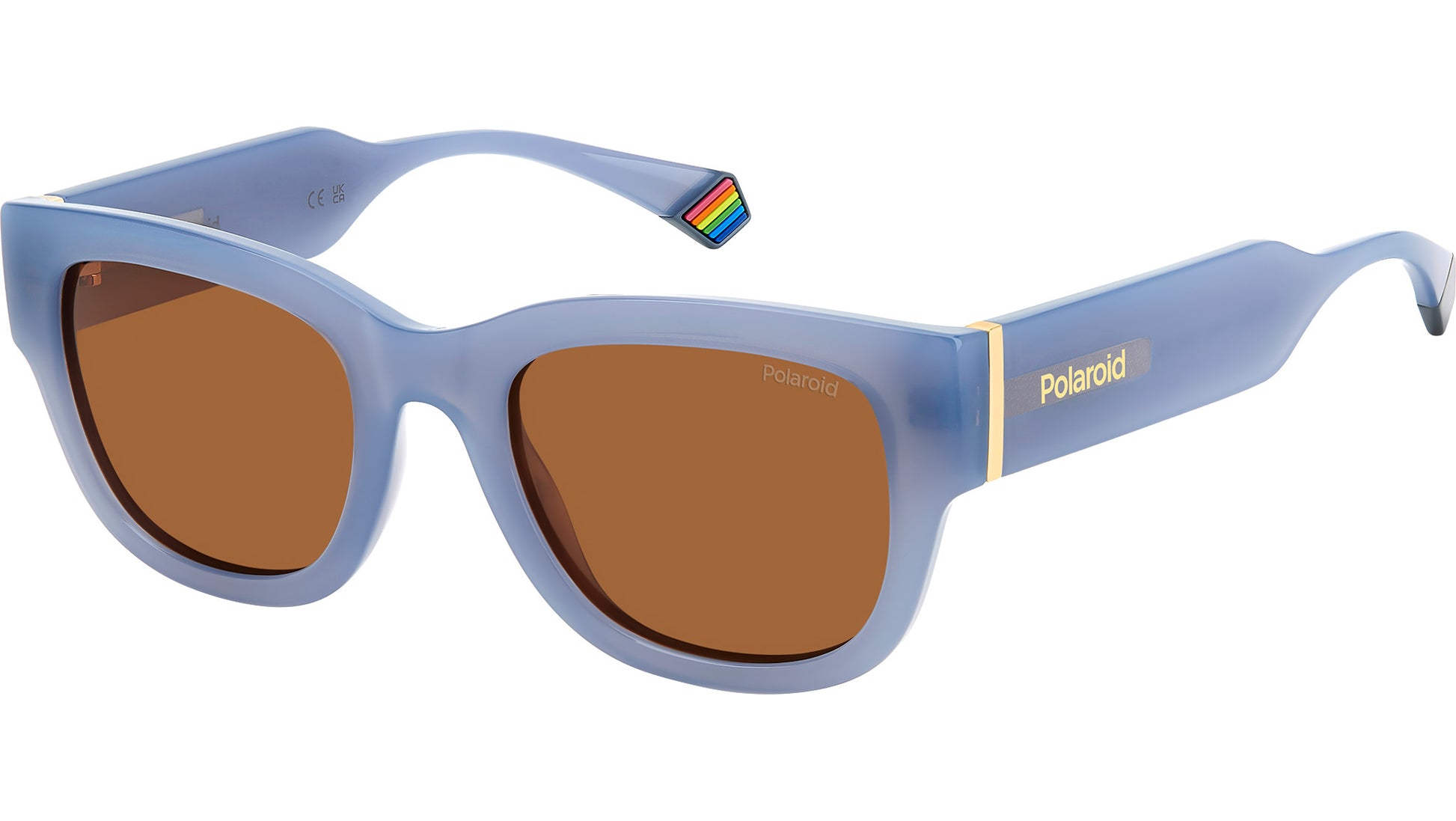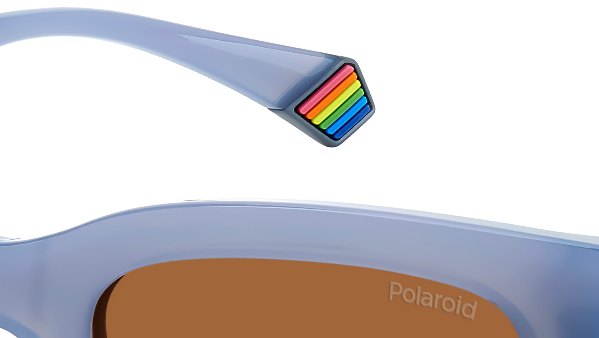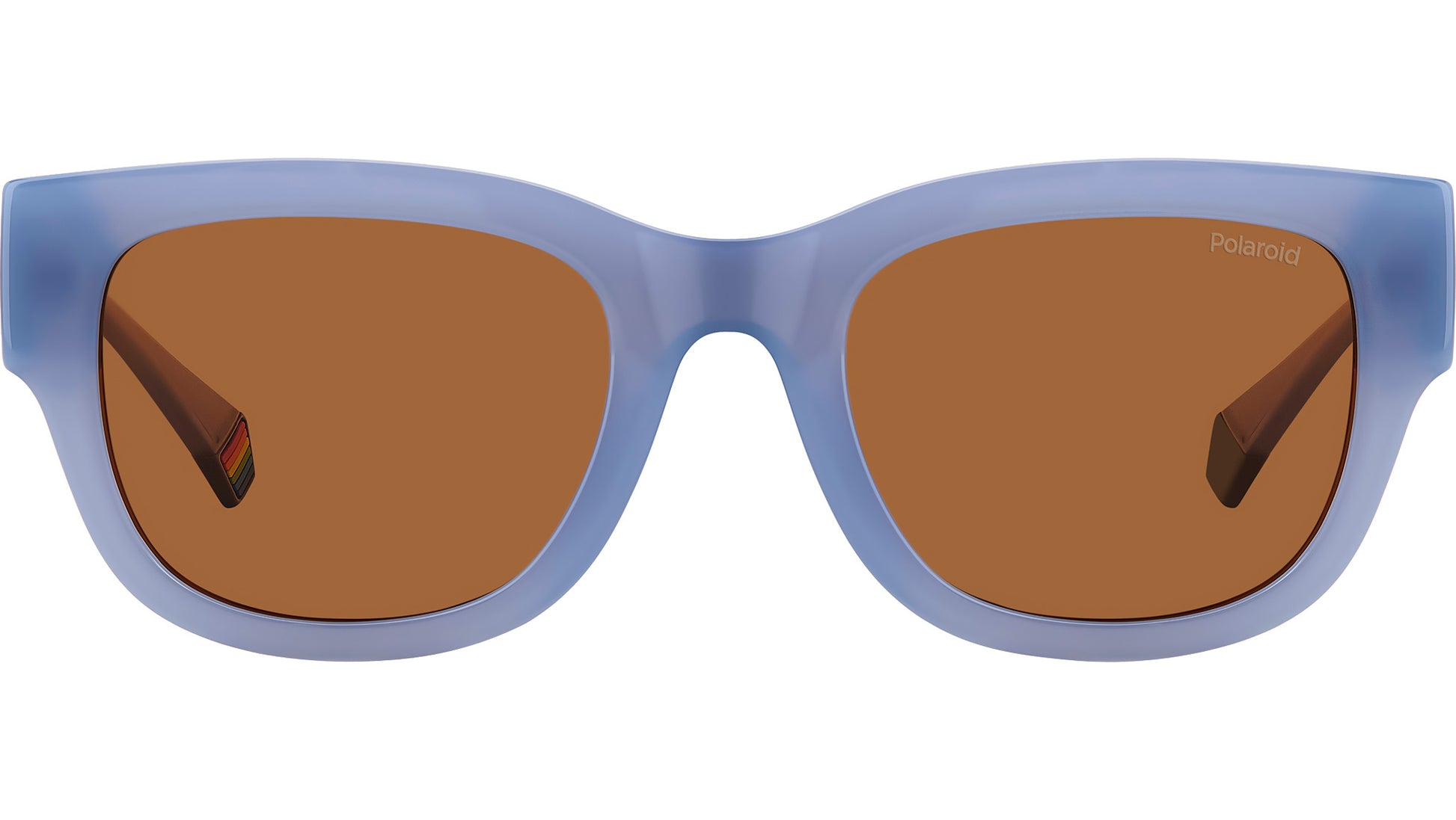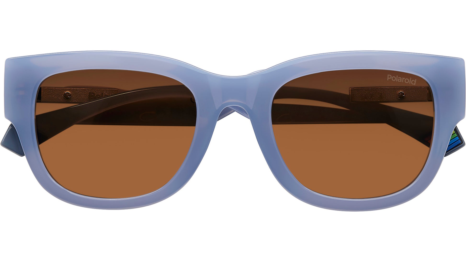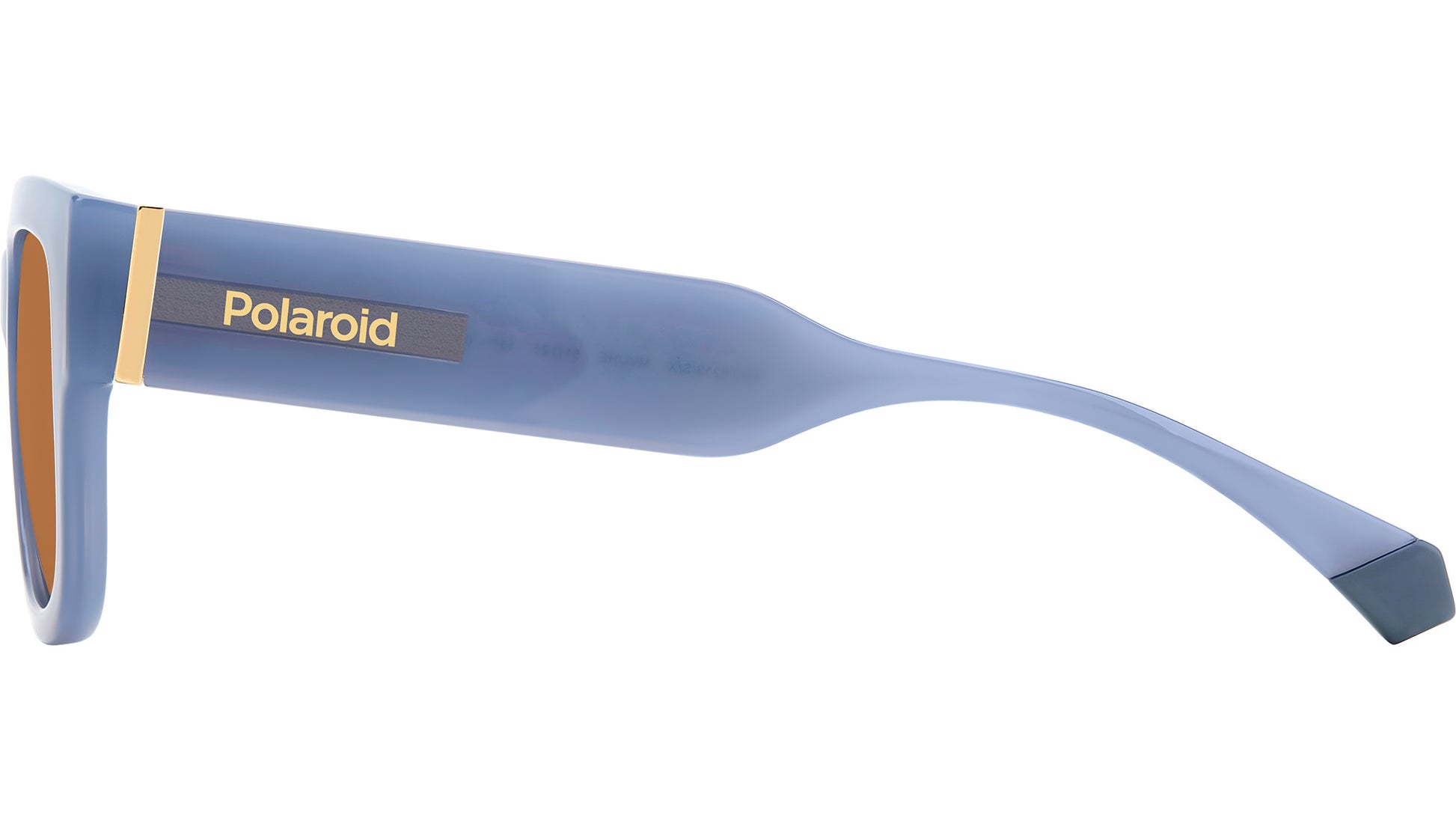 Polaroid PLD 6213/S/X MVU HE sunglasses for women, featuring azure squared polycarbonate frame and copper polarized lenses. Sunglasses are a mainstay in any wardrobe, and these Polaroid frames for women are a sure thing. A square silhouette, which is always impeccable, has been paired with maxi temples trimmed by a metallic insert and printed logo, while the Polaroid rainbow peeks out from the end tips. The colour palette spans from neutral hues to pastel tones: expressing your personality has never been this fun. This style can hold prescription lenses. Brand line: Cool. Style code: 206717. Color code: MVU HE. Authorized Polaroid online reseller. Your glasses will include the original case and accessories and are covered by a 12-month global warranty.