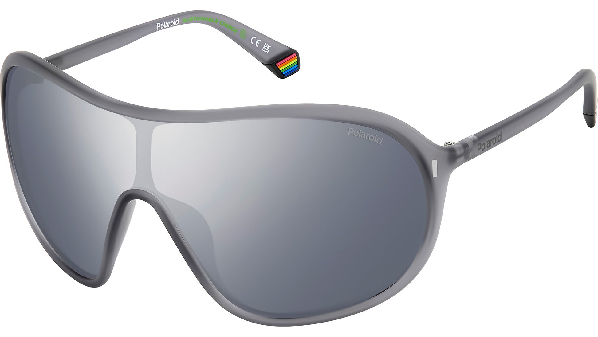 Polaroid PLD 6216/S RIW EX sunglasses for men and women, featuring matte grey shield polycarbonate frame and grey silver mirror polarized lenses. Shaped into a full-coverage shield, these Polaroid sunglasses have minimalist outlines, the perfect way to bring bold personality to any look. The polarized maxi lens comes in a yellow version, for a guaranteed vintage effect, exalted by the 3D printed detail on the front. The Polaroid wordmark is on the temples, and the rainbow detail on the end tips. The structure is in eco-polycarbonate which is obtained from renewable raw materials, for a cool and sustainable look. Brand line: Cool. Style code: 206718. Color code: RIW EX. Authorized Polaroid online reseller. Your glasses will include the original case and accessories and are covered by a 12-month global warranty.
