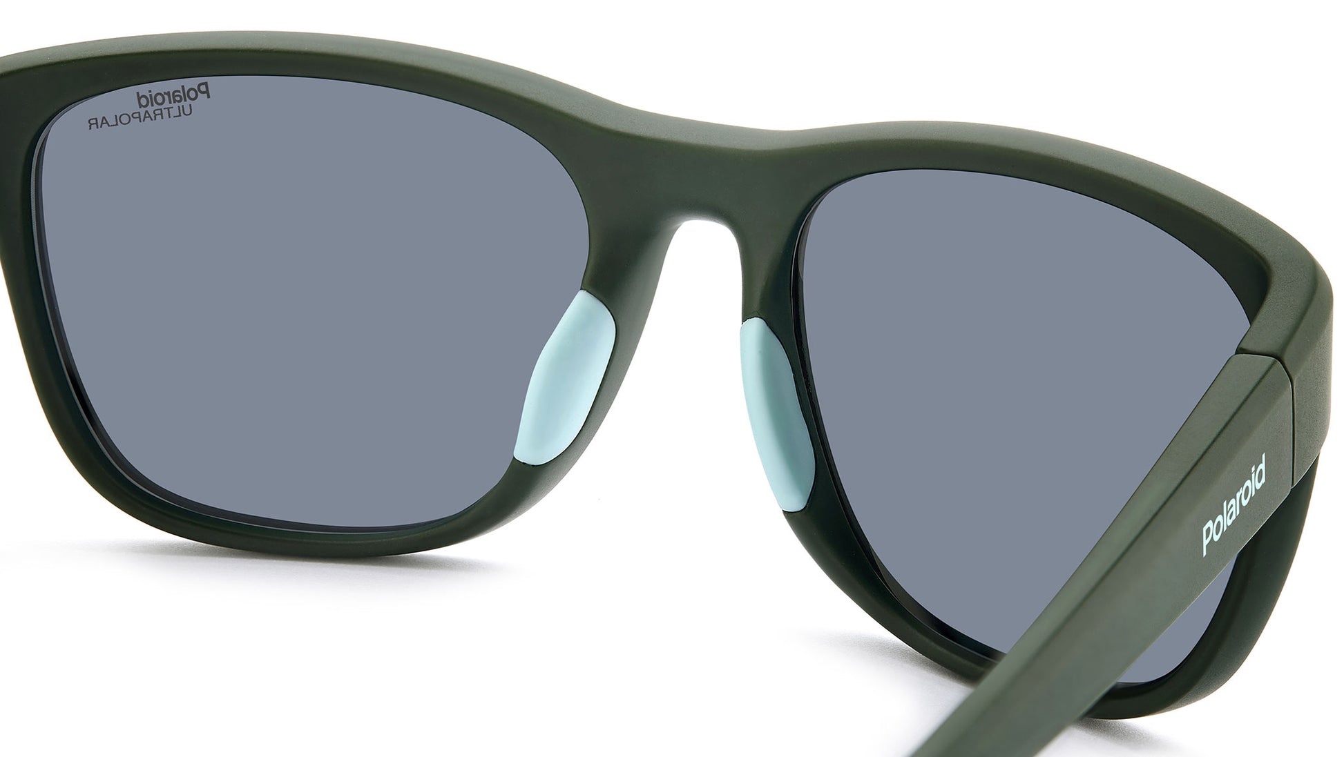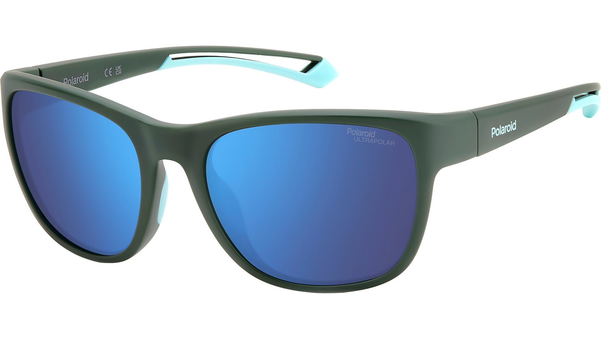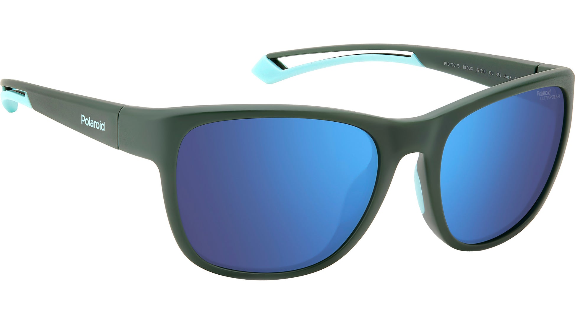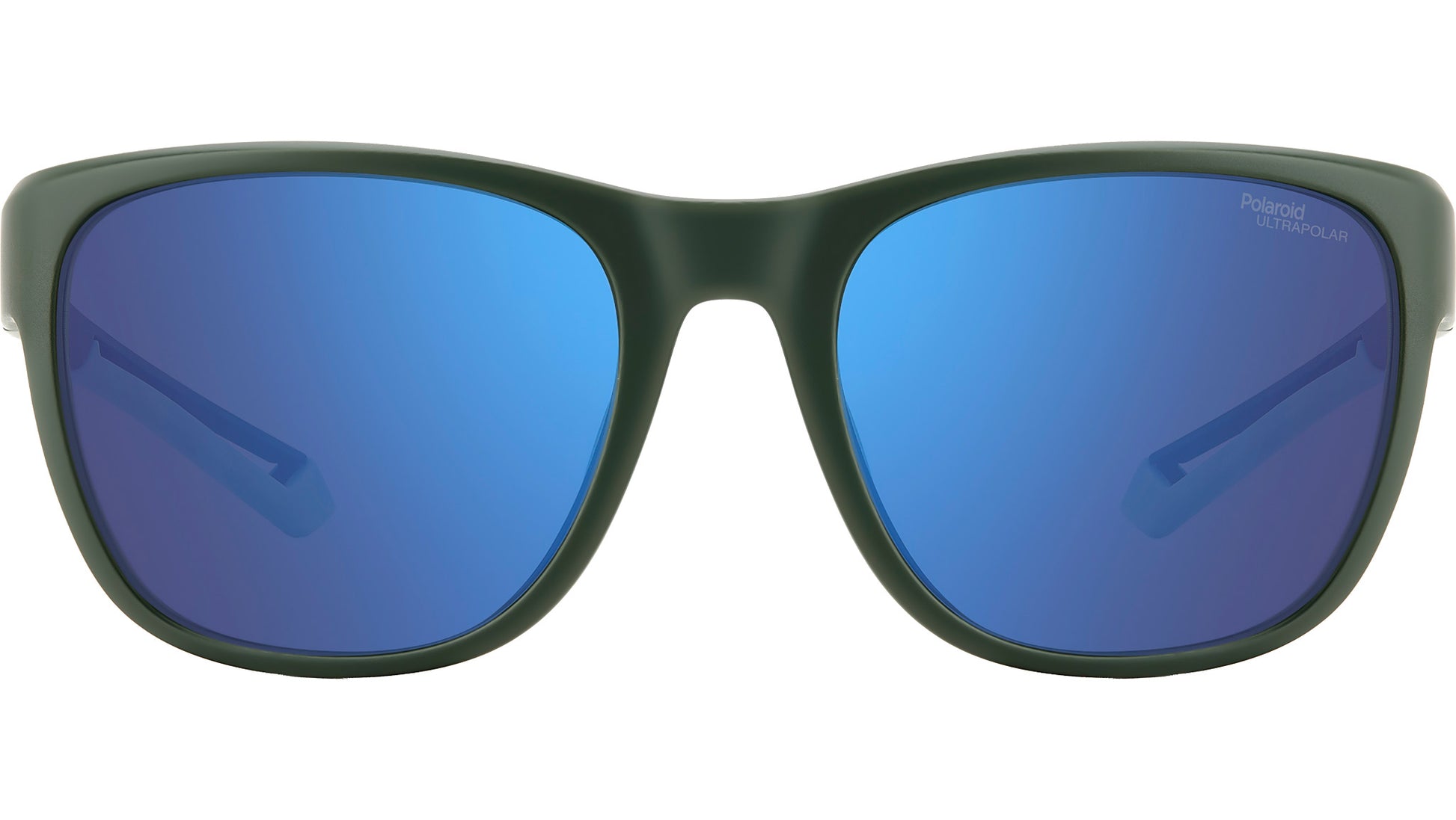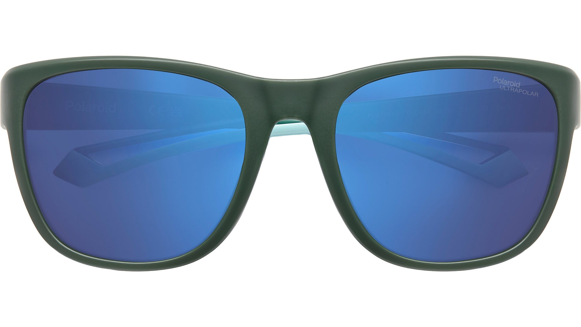 Polaroid PLD 7051/S DLD QG sunglasses for men and women, featuring matte green rectangular polycarbonate frame and blue mirror polarized high contrast lenses. These unisex sunglasses from Polaroid are designed to offer maximum performance. The polycarbonate structure is lightweight yet durable, perfect for everyday activities. The cut-out end tips let air circulate easily, while the rubber inserts guarantee a no-slip fit. The printed logo matches the end tips, forming a chromatic combination that lends itself to self expression. The sun lenses come with ultrapolar technology for clear, crisp colours and contrast. Brand line: Active. Style code: 206736. Color code: DLD QG. Authorized Polaroid online reseller. Your glasses will include the original case and accessories and are covered by a 12-month global warranty.