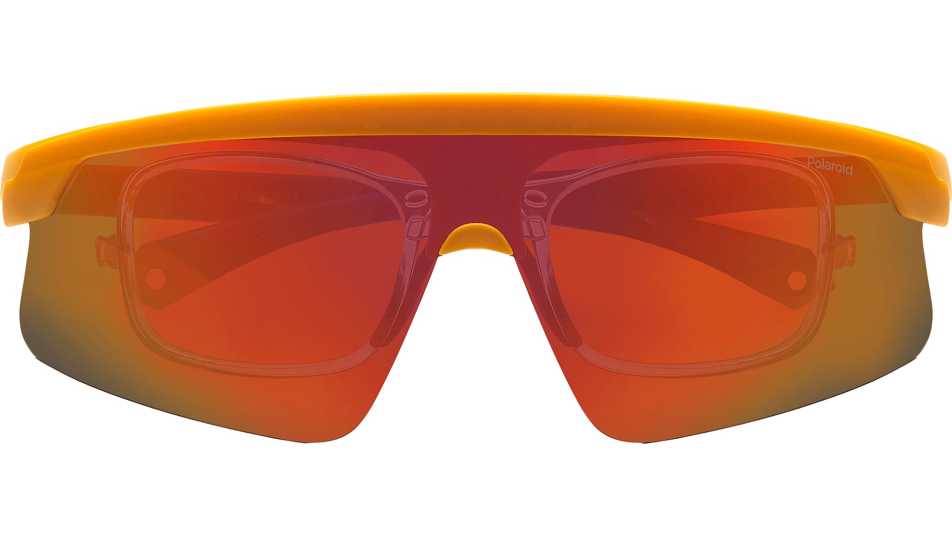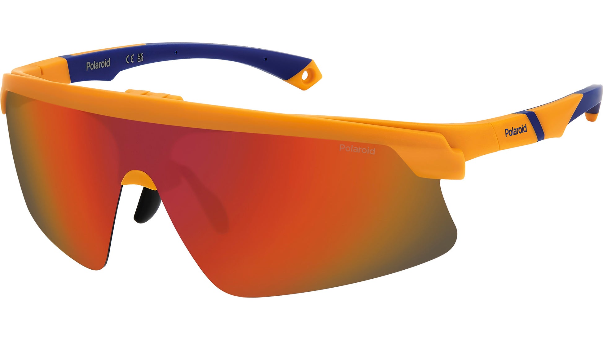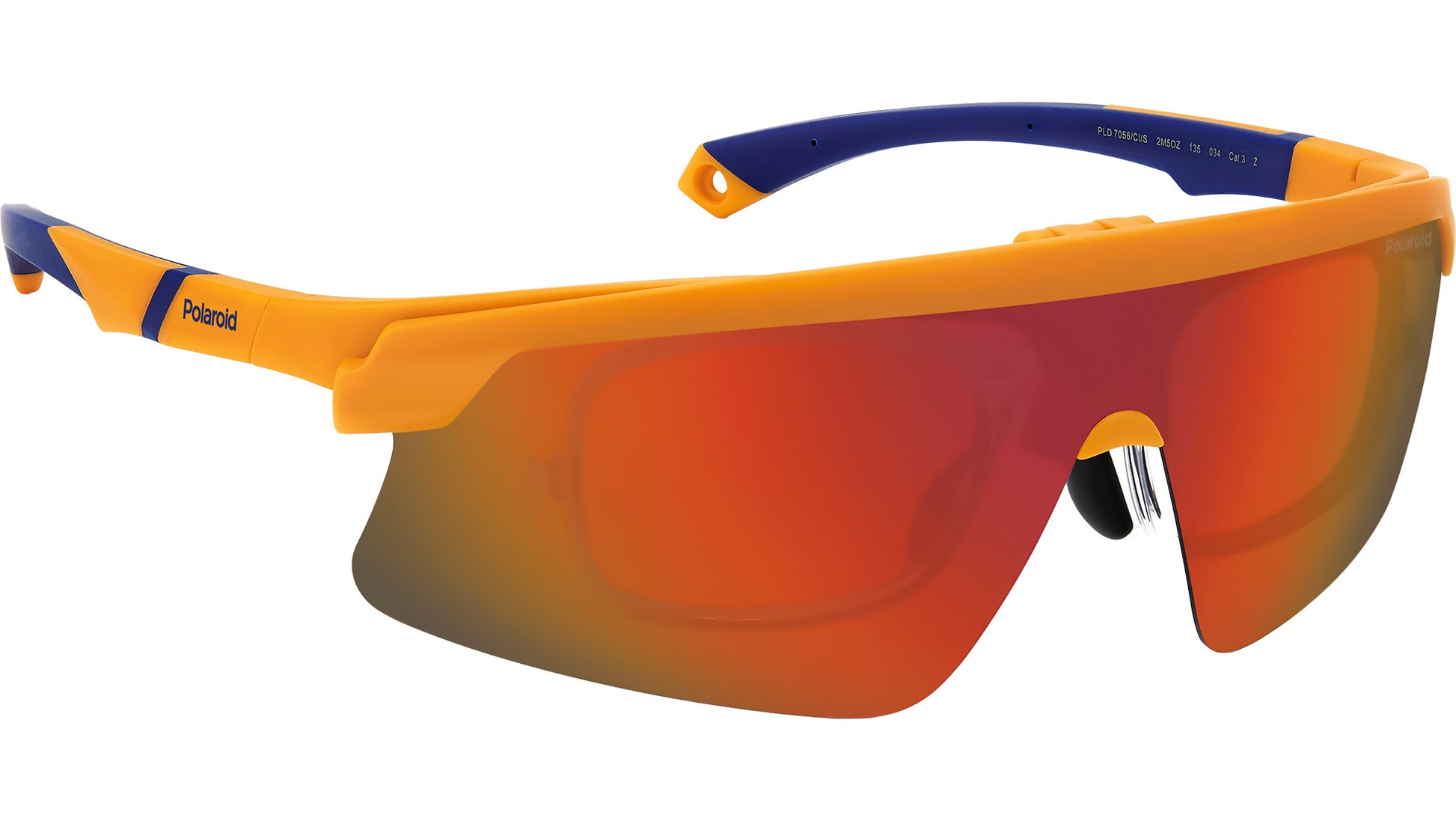 Polaroid PLD 7056/CI/S 2M5 OZ sunglasses for men, featuring matte orange rectangular polycarbonate frame and red multilayer polarized lenses. These aerodynamic and high-tech Polaroid sunglasses ride one of the most up-to-date trends in sportswear today. They're composed of a full-coverage frame which rests on rubberised nose pads and end tips for reliable grip. The sun lenses can be raised with a simple movement, revealing the optical lenses below. These glasses can be completed by an elastic strap, purchased separately, which conveniently fits into the openings on the end tips. Brand line: Active. Style code: 207377. Color code: 2M5 OZ. Authorized Polaroid online reseller. Your glasses will include the original case and accessories and are covered by a 12-month global warranty.