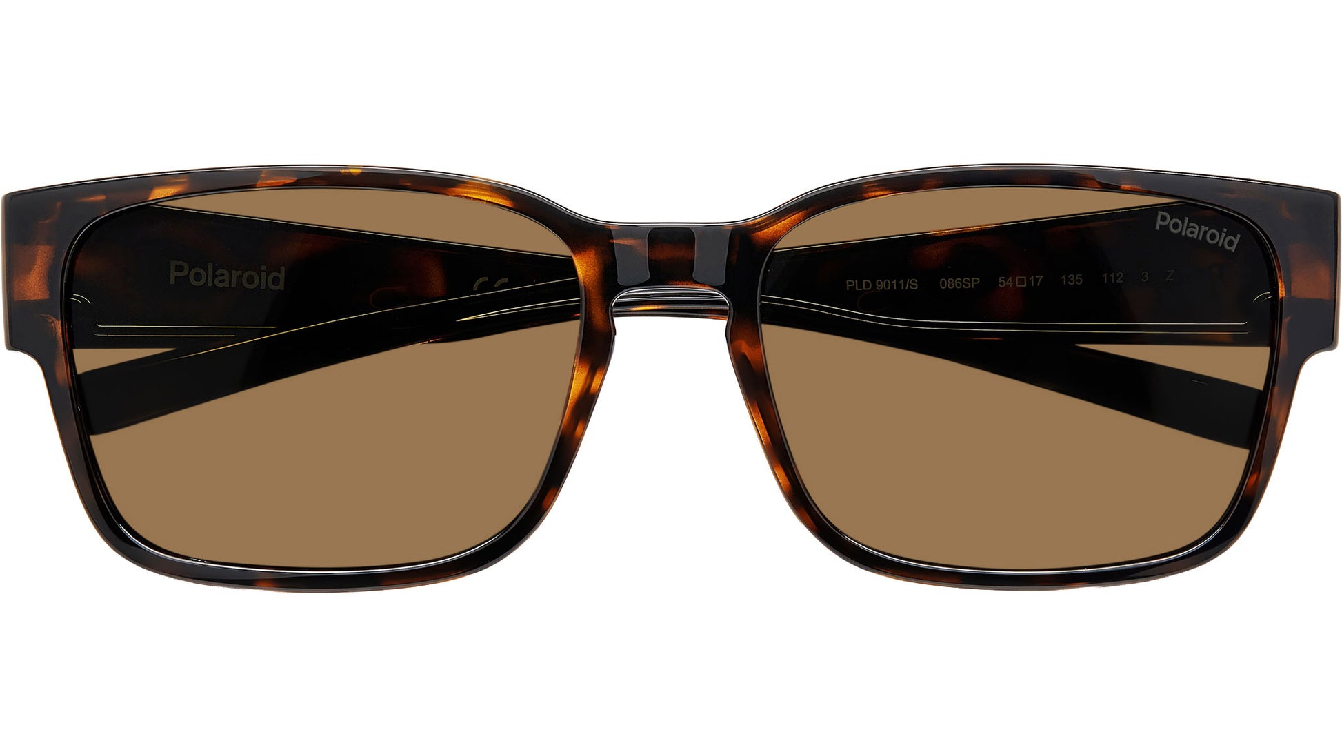 Polaroid Ancillares PLD 9011/S 086 SP sunglasses featuring havana rectangular polycarbonate frame and bronze polarized lenses. Brand line: Suncovers. Style code: 201032. Color code: 086 SP. Authorized Polaroid Ancillares online reseller. Your glasses will include the original case and accessories and are covered by a 12-month global warranty.