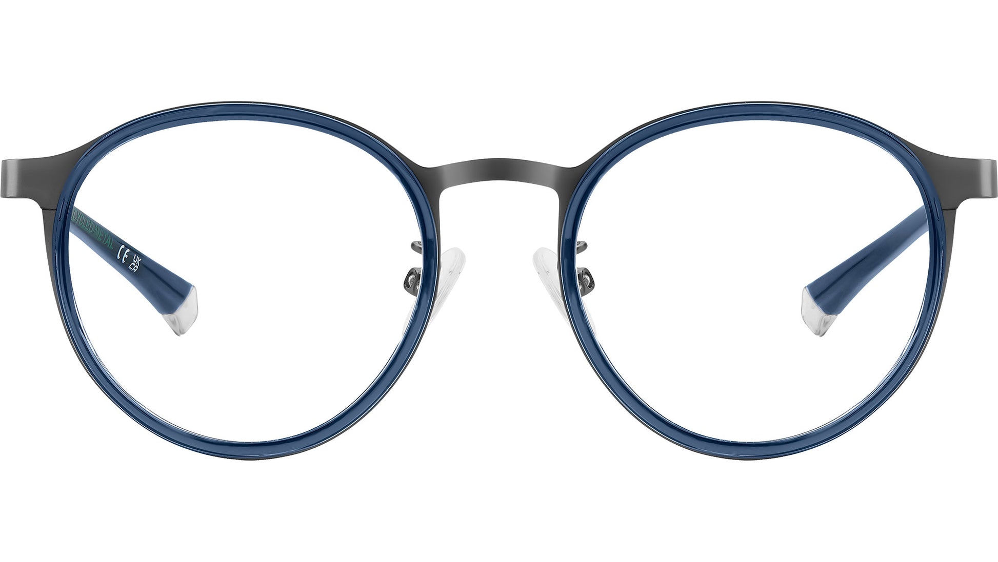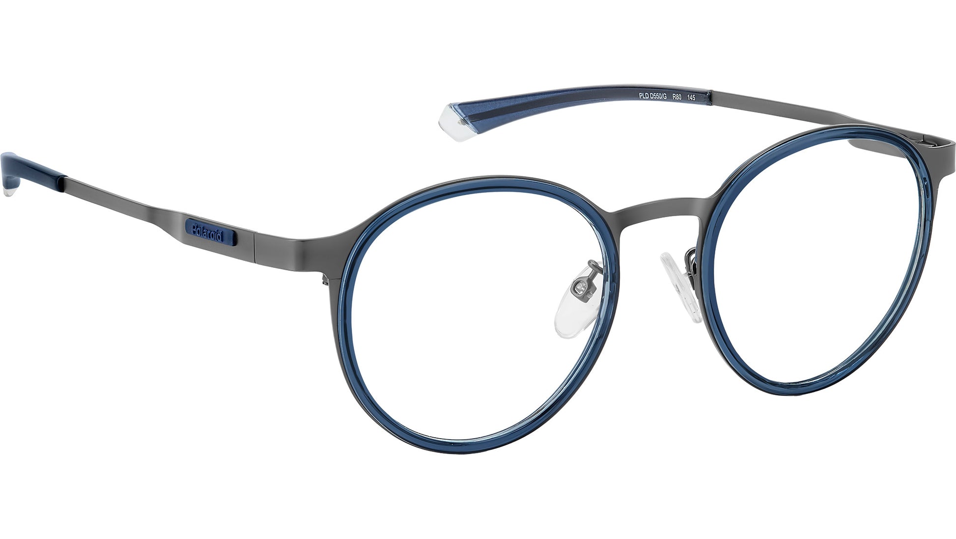 Polaroid PLD D550/G R80 glasses for men, featuring matte dark ruthenium panthos metal frame and demo lens lenses. Lightweight eyeglasses with a dynamic shape, designed by Polaroid for men who want a sporty look they can wear day after day. Their unparalleled style can be attributed to the round recycled metal rims accented by eco-polyamide trim at the front. The adjustable nose pads ensure comfort. The Polaroid logotype is found on the rubber insert on the temples. Brand line: Active. Style code: 108838. Color code: R80. Authorized Polaroid online reseller. Your glasses will include the original case and accessories and are covered by a 12-month global warranty.