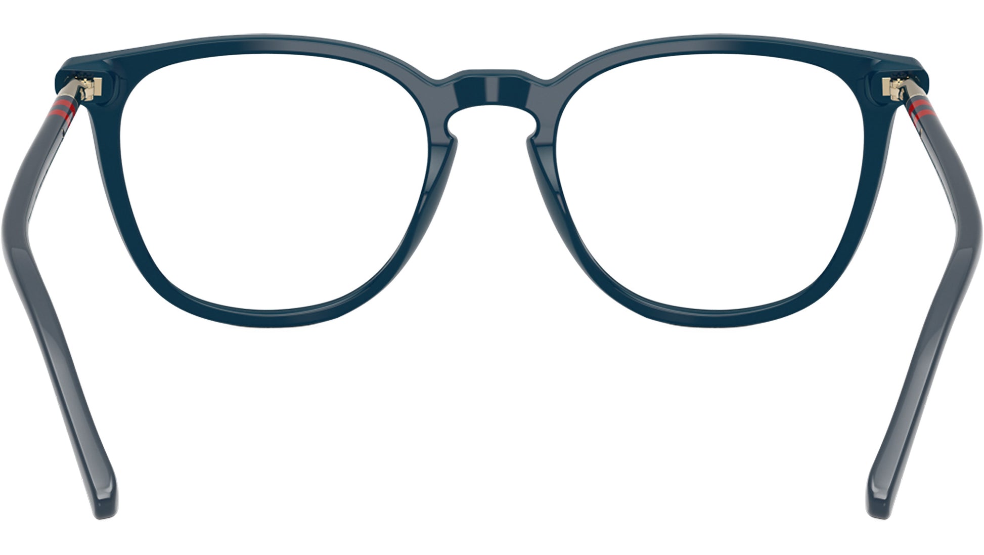 Polo PH2288 5465 glasses, featuring shiny blue squared acetate frame and demo lenses. High bridge fit. Brand line: Core Aspirational. Style code: 0PH2288. Color code: 5465. Authorized Polo online reseller. Your glasses will include the original case and accessories and are covered by a 12-month global warranty.