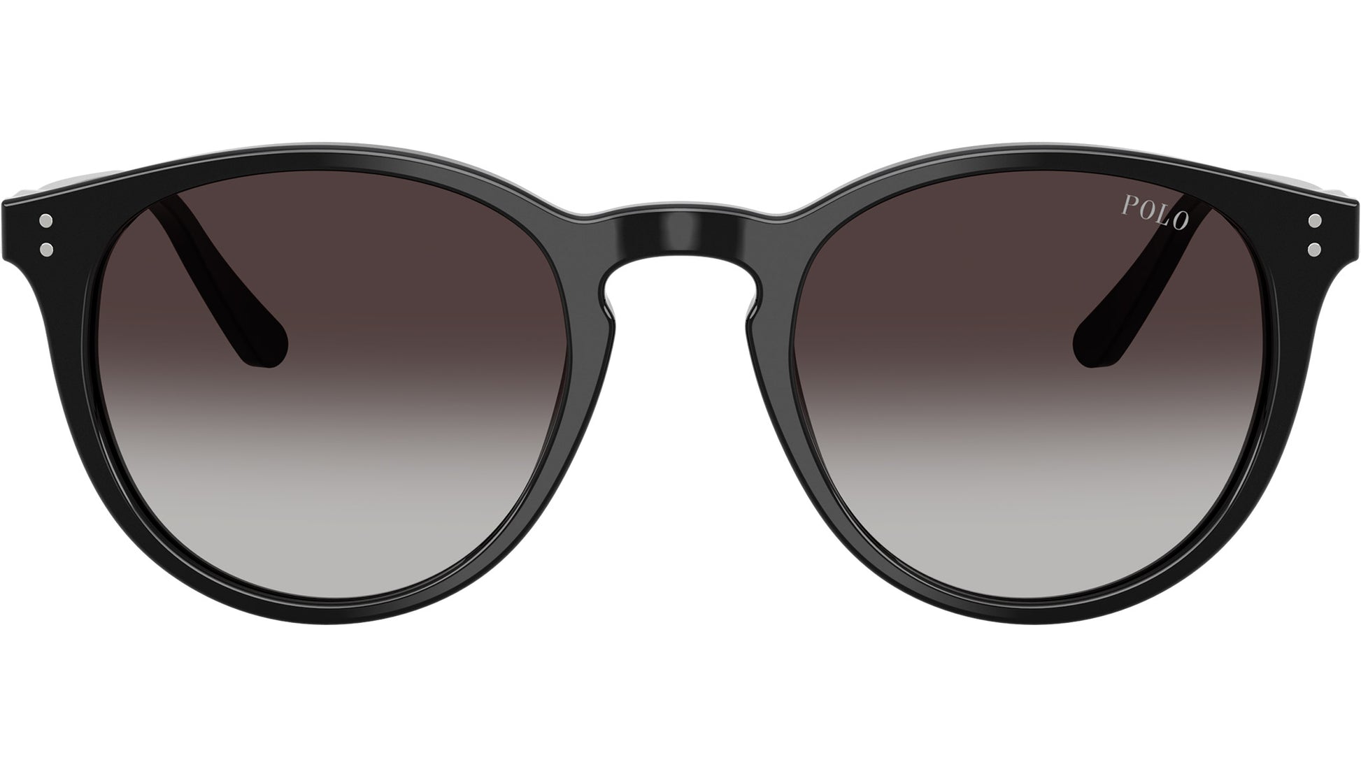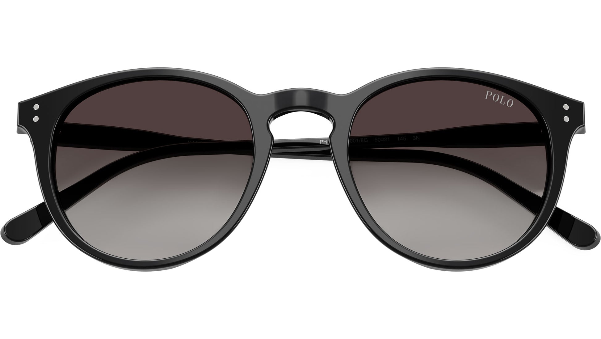 Polo PH4110 50018G sunglasses, featuring shiny black panthos acetate frame and gradient grey bio polyamide lenses. High bridge fit. Brand line: Classic. Style code: 0PH4110. Color code: 50018G. Authorized Polo online reseller. Your glasses will include the original case and accessories and are covered by a 12-month global warranty.