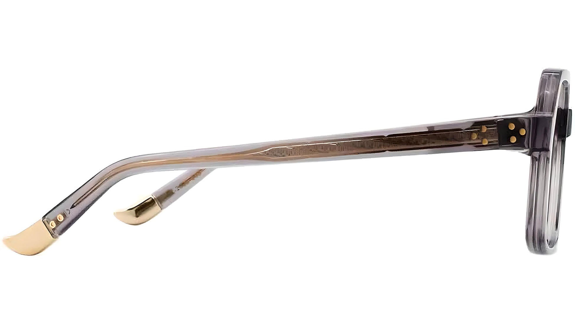 The Pontet Eyewear Capri optical frame features a sophisticated acetate body. Its temples boast metal structures engraved with the logo in a monogram style, finished with gold-plated steel, marrying elegance with refined detail.