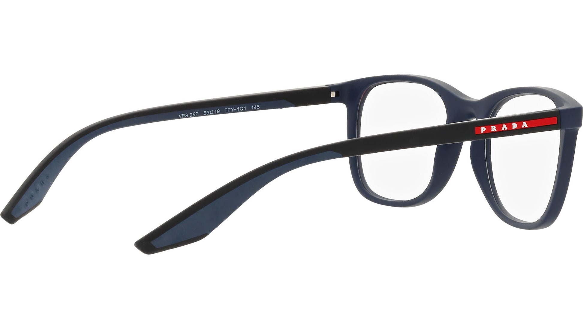 Prada Linea Rossa eyeglasses model PS 05PV color code TFY1O1 featuring rubber blue full rim nylon frame and demo lenses. Authorised Prada Linea Rossa Store. Your sunglasses will come including the original case and accessories and will be covered by 12 month global warranty.