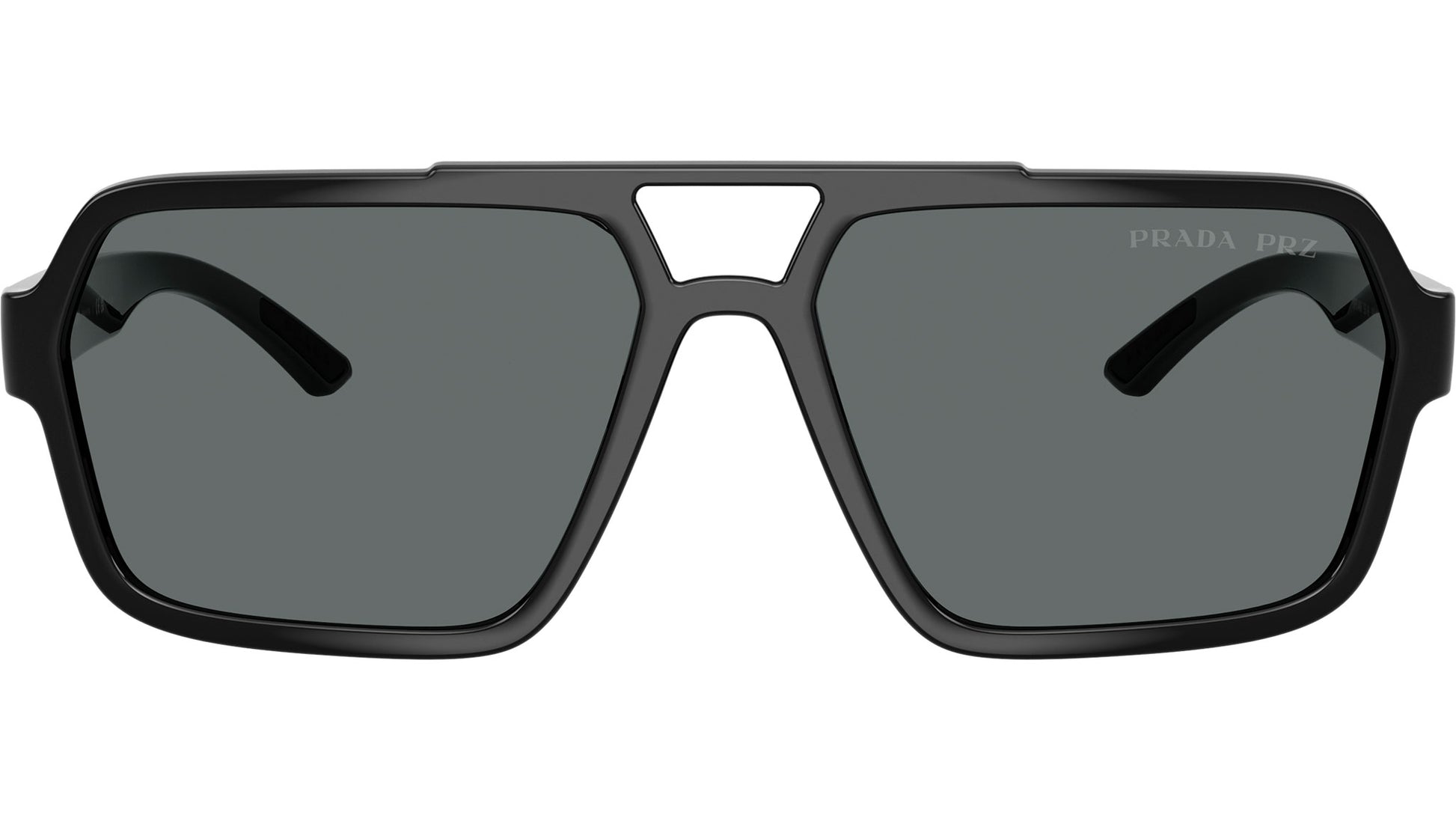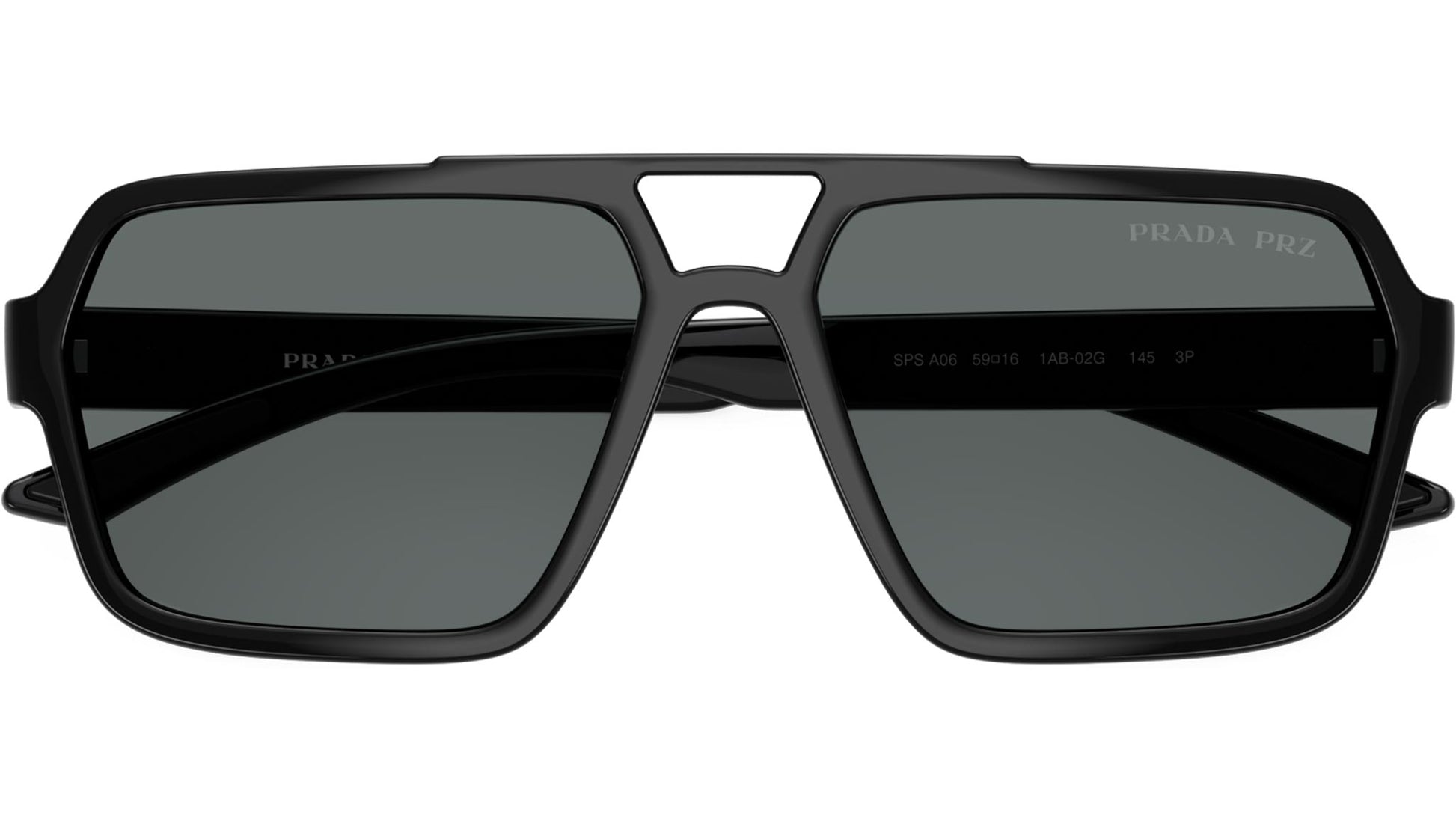 Prada Linea Rossa PS A06S 1AB02G sunglasses for men, featuring black pilot injection frame and polar dark grey polycarbonate lenses. Universal fit. Brand line: Lifestyle. Style code: PSA06S. Color code: 1AB02G. Made in Italy. Authorized Prada Sport online reseller. Your glasses will include the original case and accessories and are covered by a 12-month global warranty.
