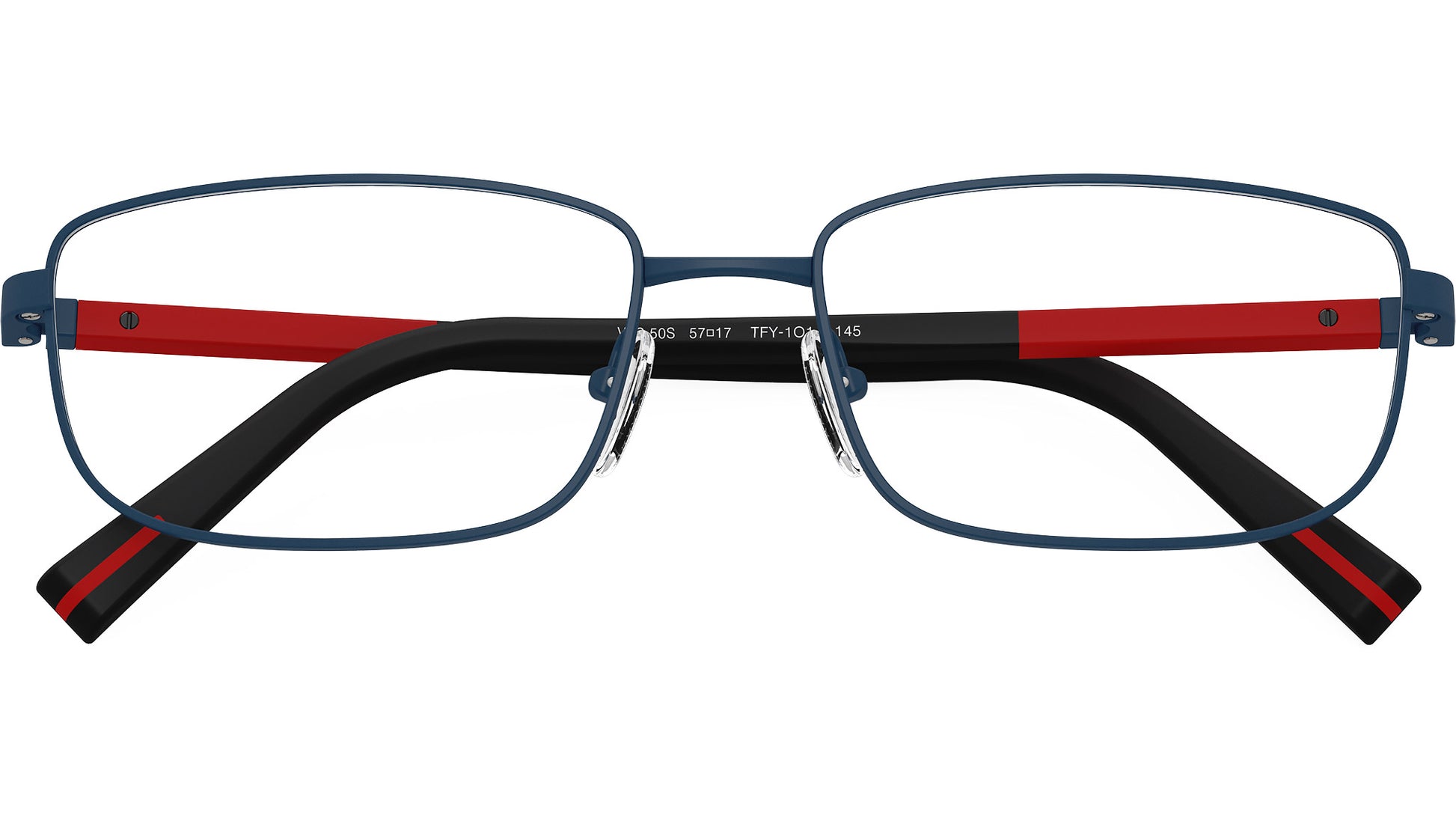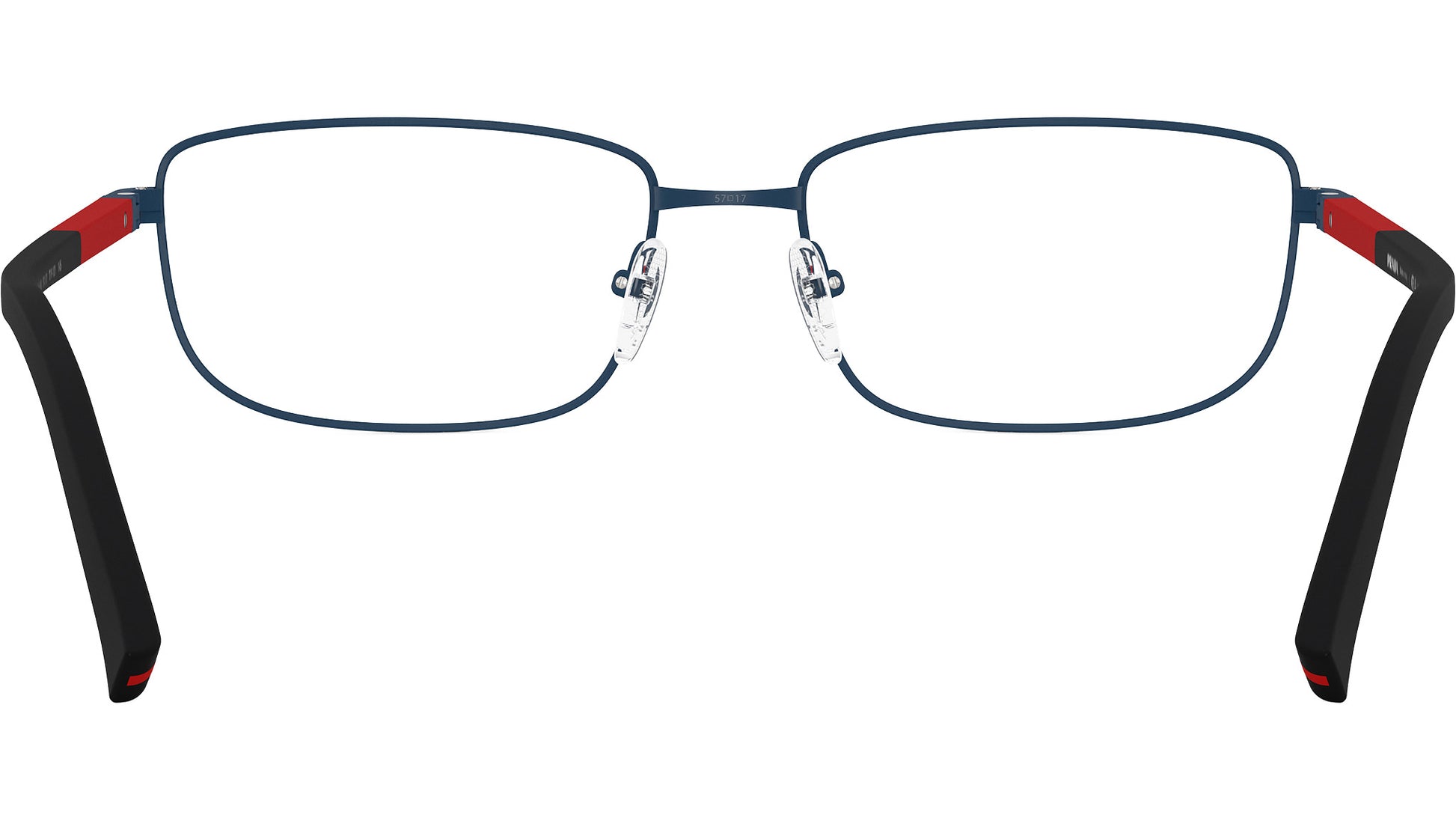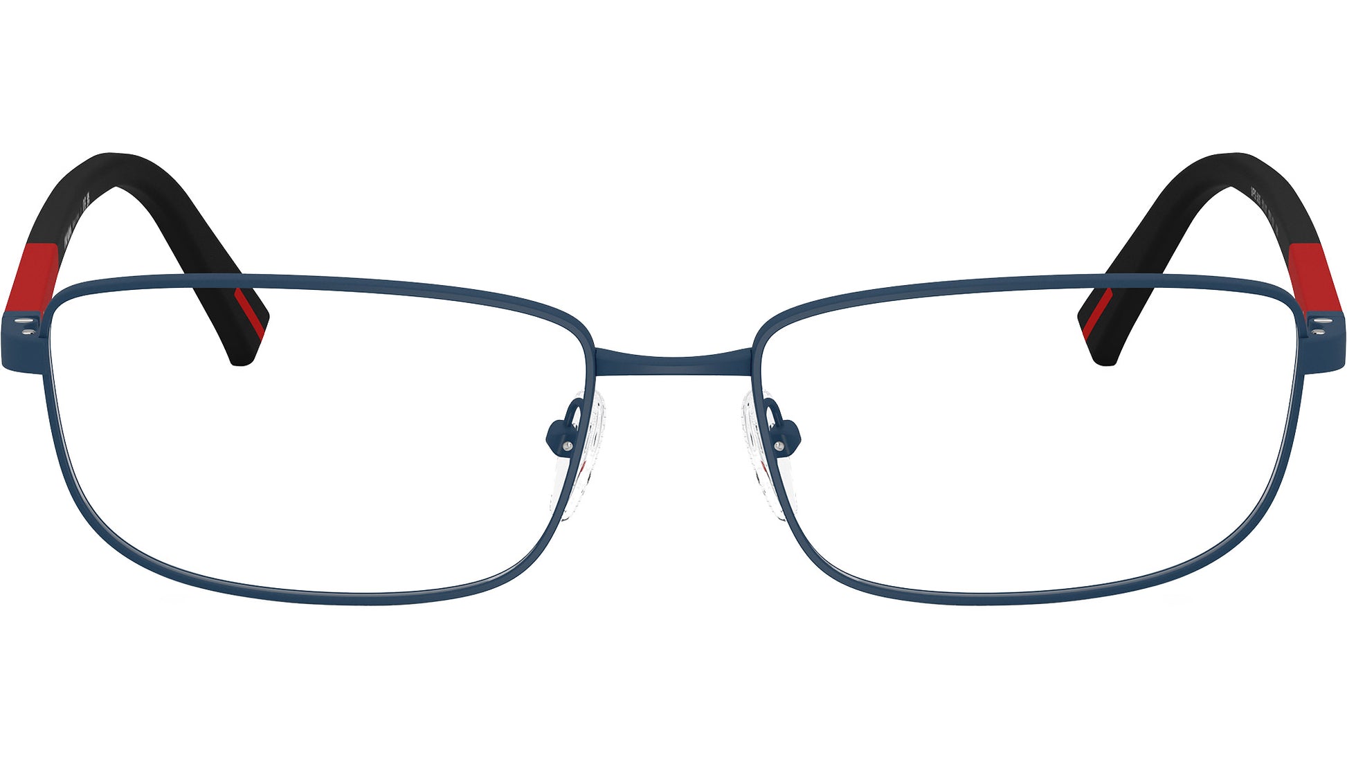 Prada Linea Rossa PS 50SV TFY1O1 glasses for men, featuring matte blue d-frame metal frame and demo lenses. Adjustable nosepads. Brand line: Lifestyle. Style code: PS50SV. Color code: TFY1O1. Made in Italy. Authorized Prada Sport online reseller. Your glasses will include the original case and accessories and are covered by a 12-month global warranty.