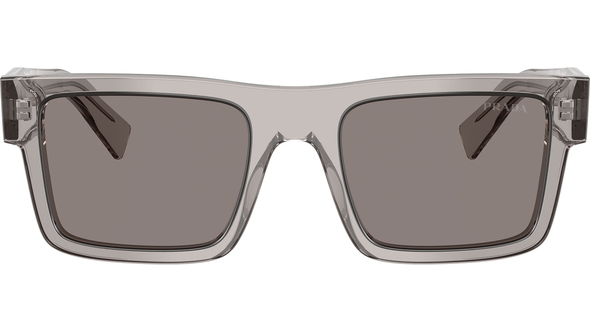 Prada PR 19WS 10J80Q sunglasses for men, featuring hematite rectangular acetate frame and dark grey bio polyamide lenses. High bridge fit. Brand line: Catwalk. Style code: PR19WS. Color code: 10J80Q. Made in Italy. Authorized Prada online reseller. Your glasses will include the original case and accessories and are covered by a 12-month global warranty.