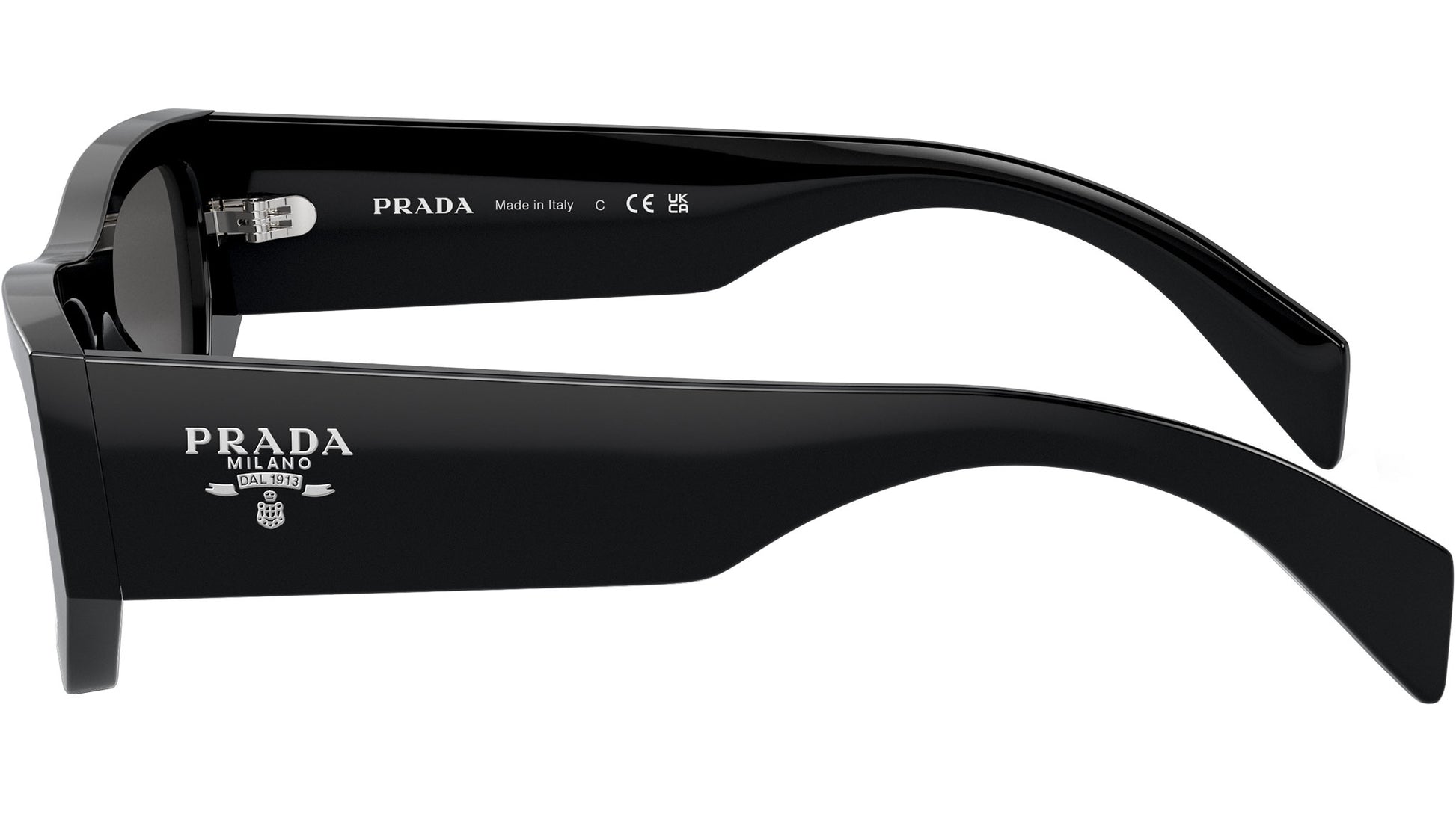 Prada sunglasses unisex model A01S featuring black full rim acetate frame and base 2 dark grey lens. High bridge fit. Frame line: Signature. Brand code: PRA01S. Color code: 16K08Z. Authorised Prada Online Reseller. Your glasses will come including the original case and accessories and will be covered by 12 month global warranty.