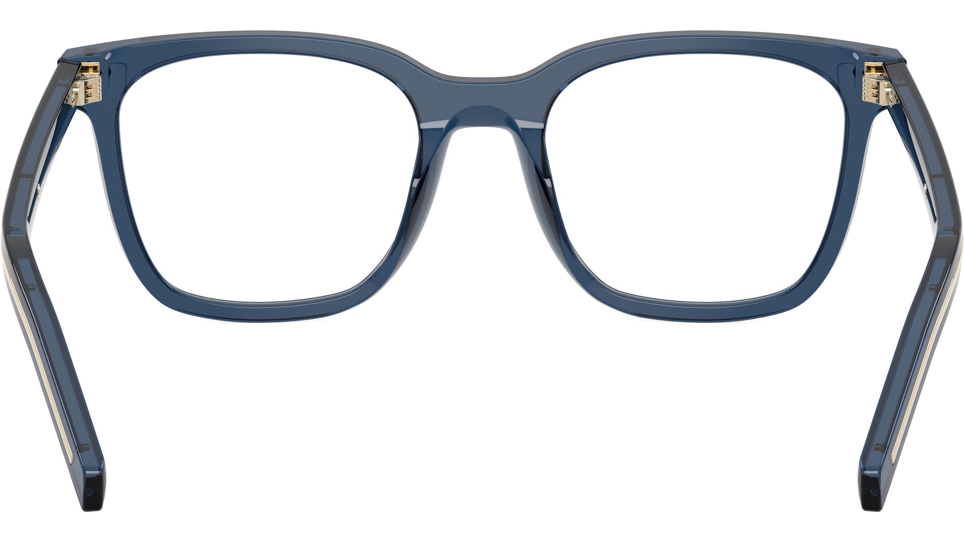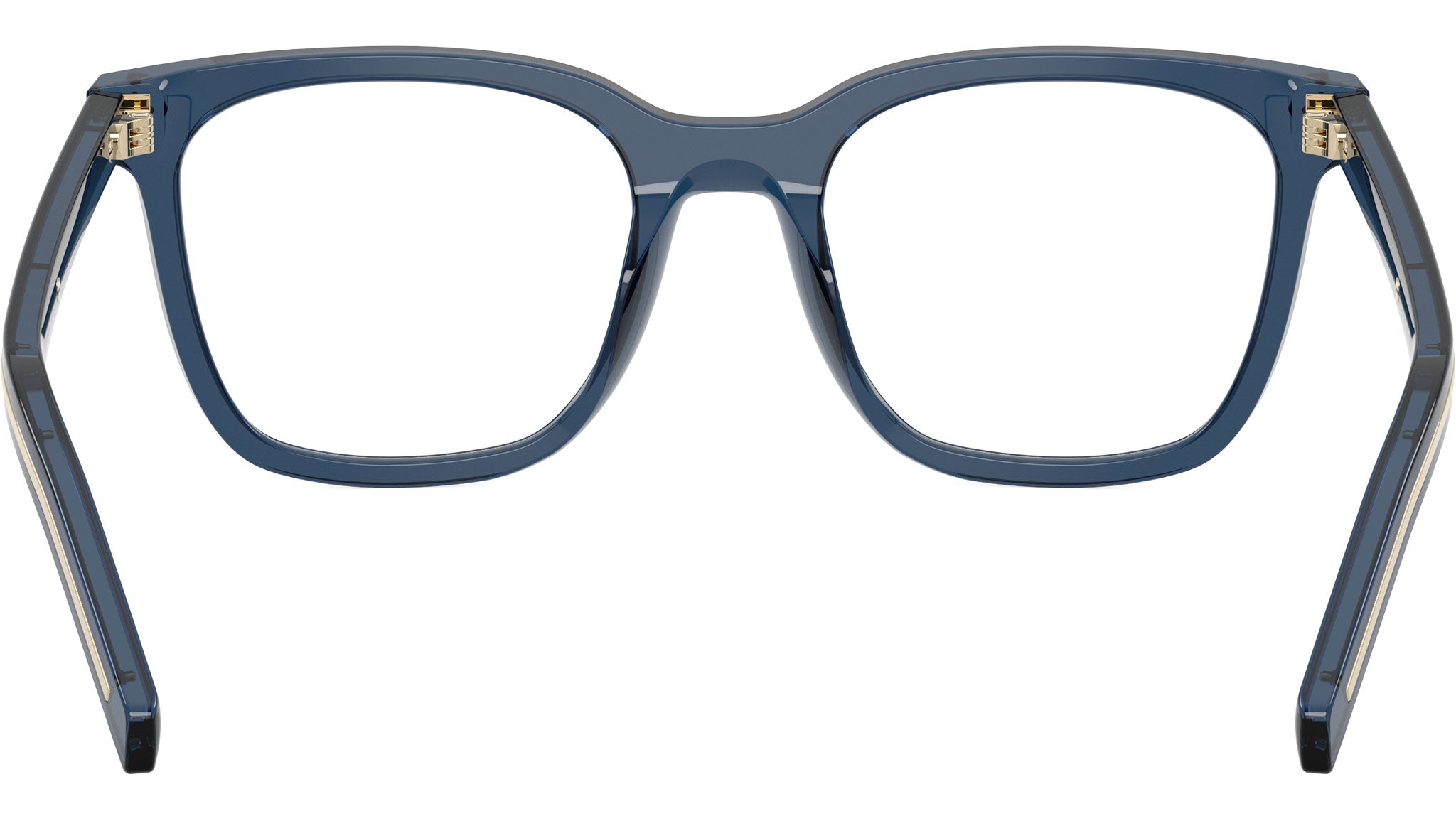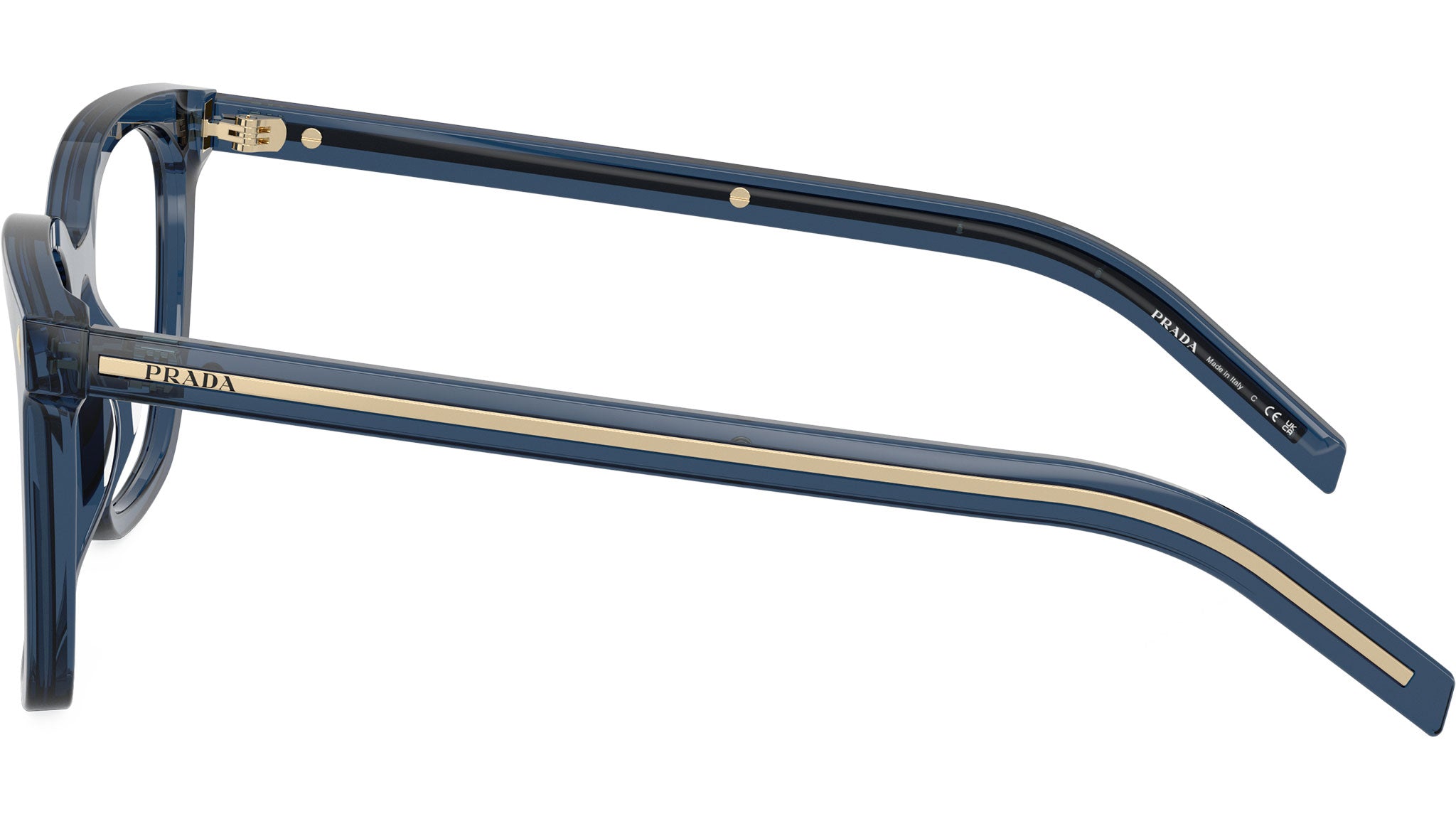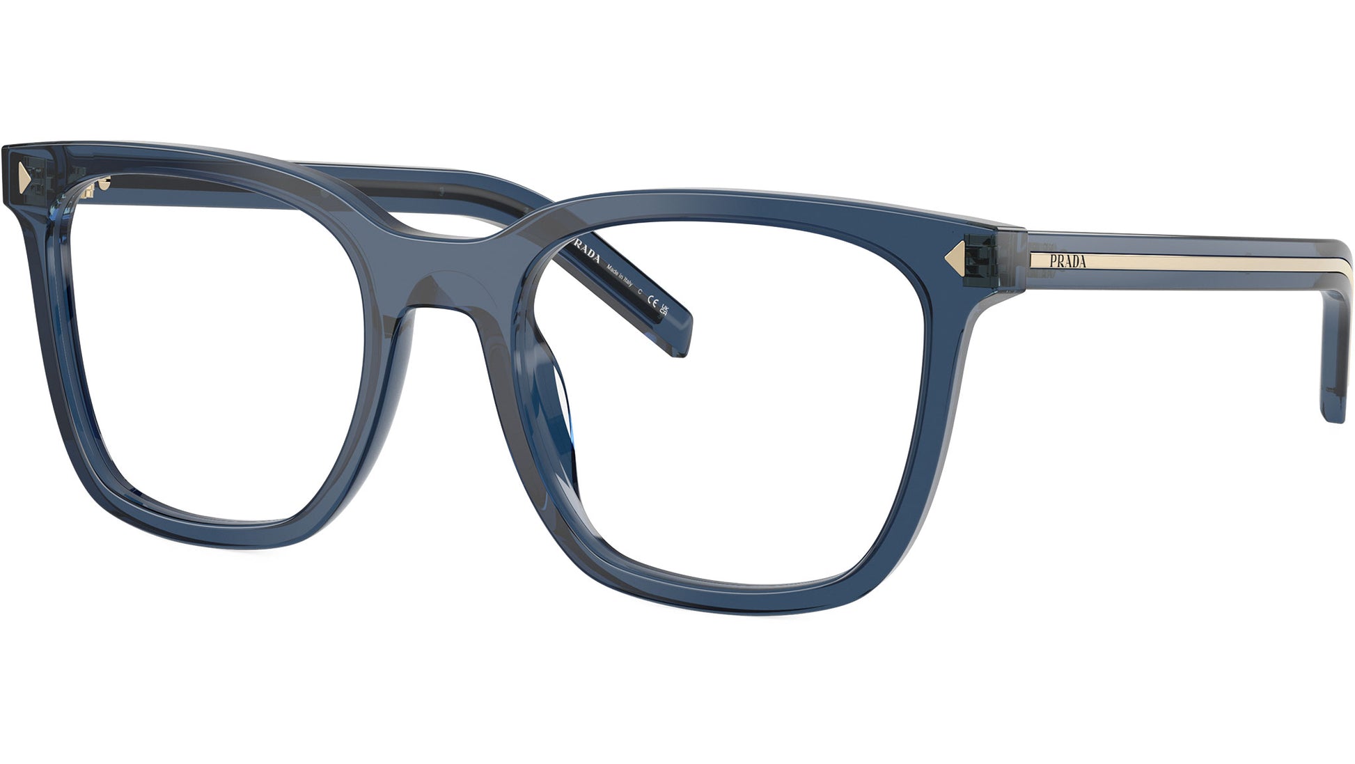 Prada PR B11V 08Q1O1 glasses for women, featuring blue crystal d-frame acetate frame and demo lens. High bridge fit. Brand line: Signature. Style code: PRB11V. Color code: 08Q1O1. Made in Italy. Authorized Prada online reseller. Your glasses will include the original case and accessories and are covered by a 12-month global warranty.