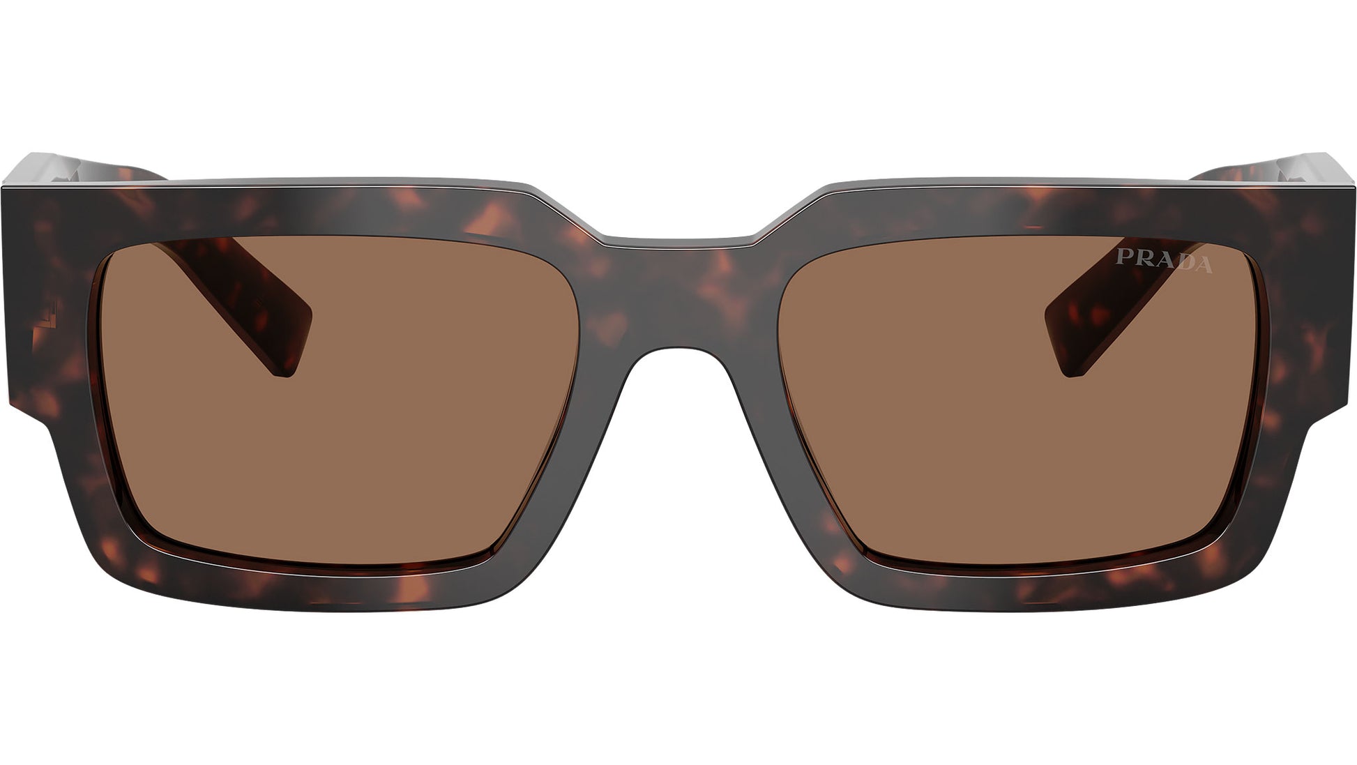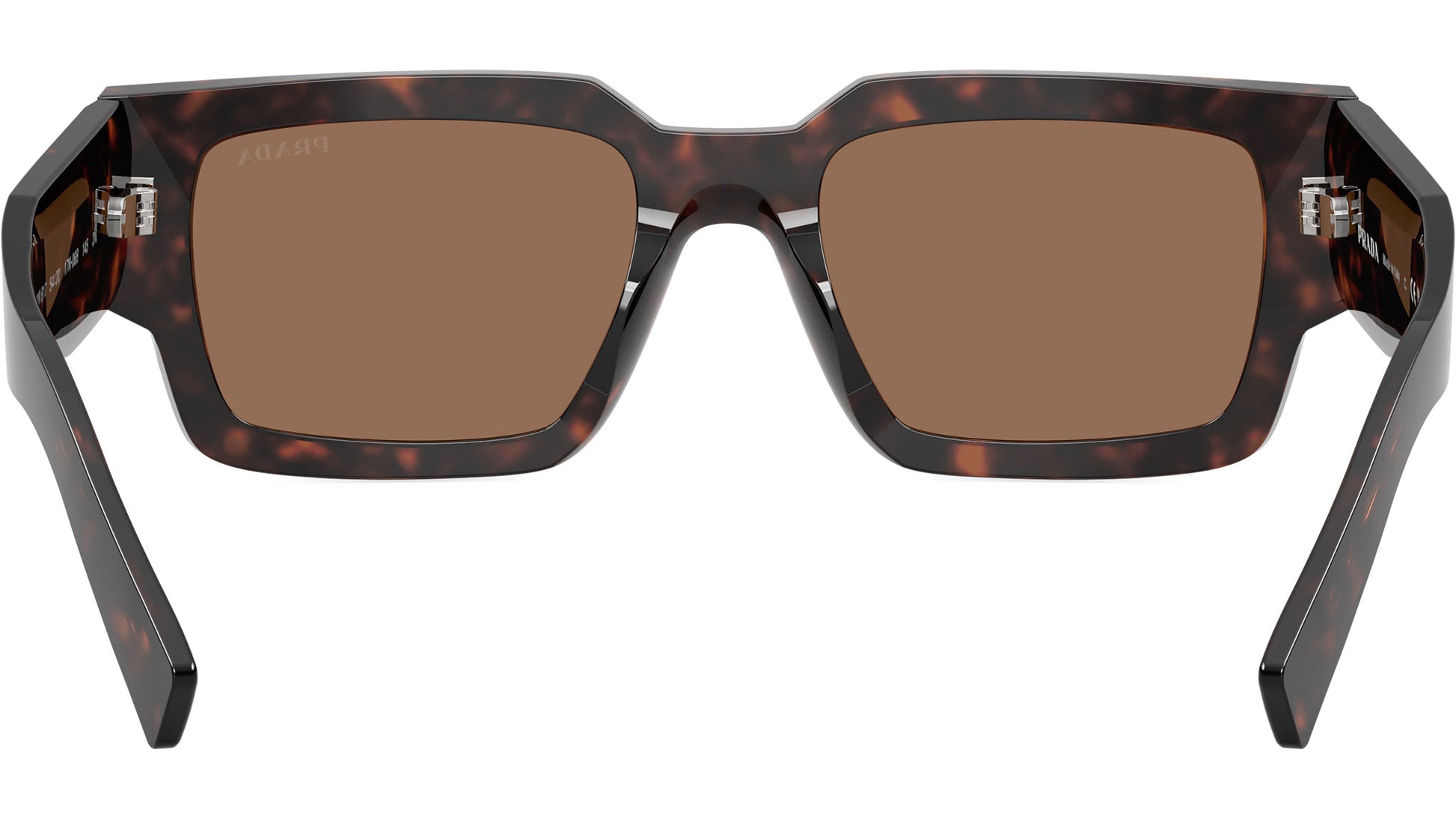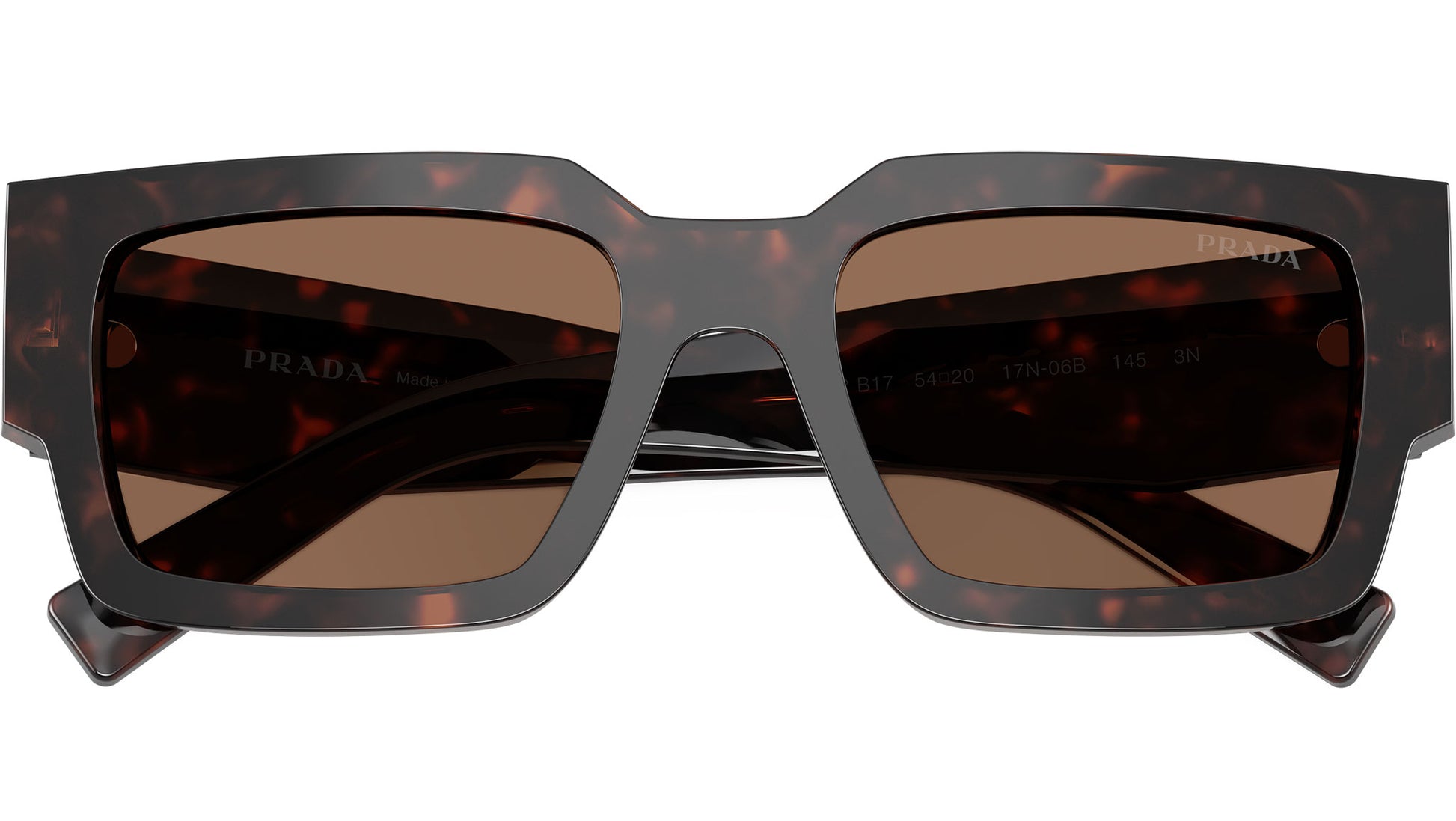 Prada PR B17S 17N06B sunglasses for men, featuring root tortoise rectangular acetate frame and dark brown bio polyamide lenses. High bridge fit. Brand line: Design. Style code: PRB17S. Color code: 17N06B. Made in Italy. Authorized Prada online reseller. Your glasses will include the original case and accessories and are covered by a 12-month global warranty.