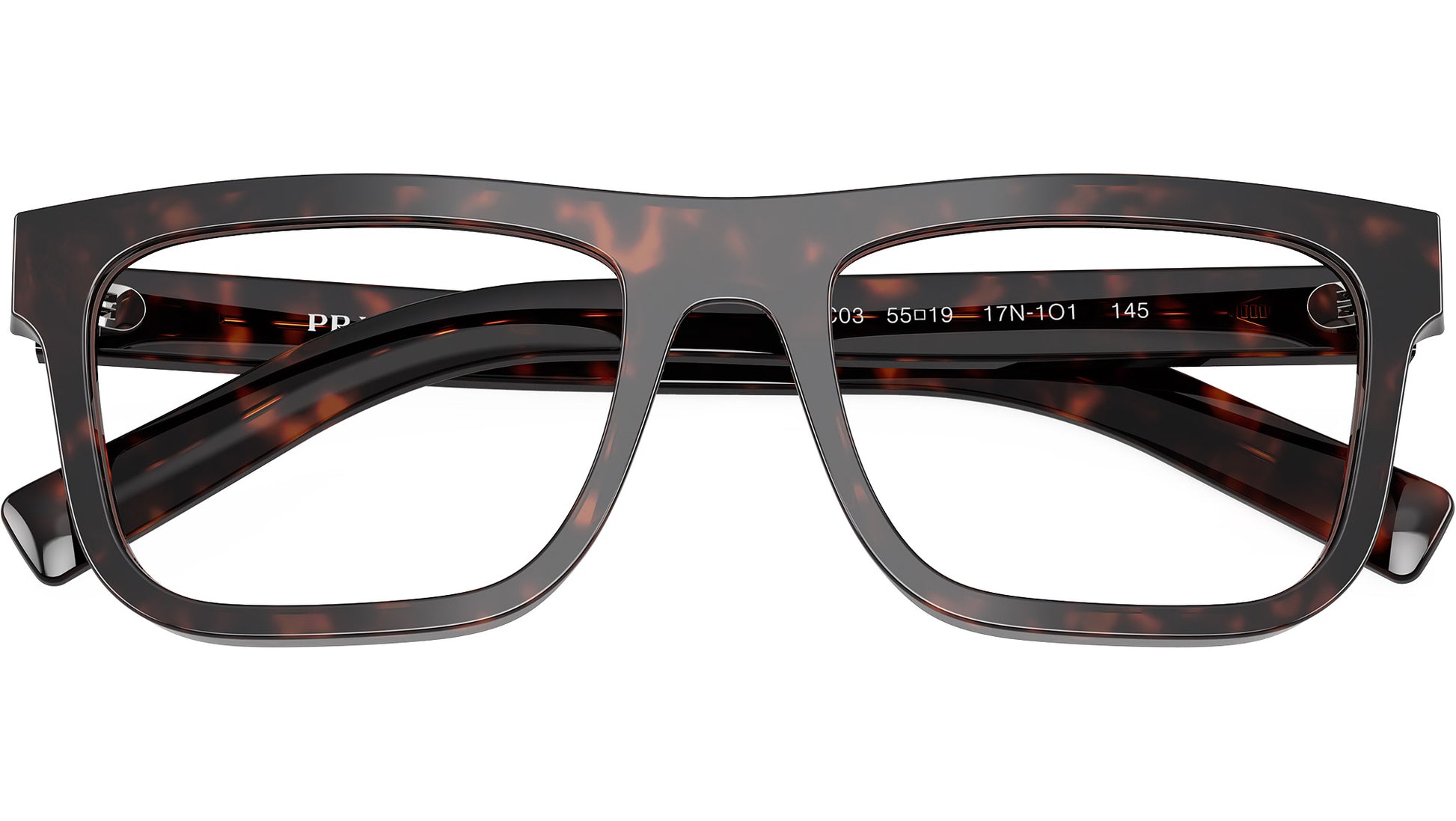 Prada PR C03V 17N1O1 glasses for men, featuring root tortoise d-frame acetate frame and demo lens. High bridge fit. Brand line: Essential. Style code: PRC03V. Color code: 17N1O1. Made in Italy. Authorized Prada online reseller. Your glasses will include the original case and accessories and are covered by a 12-month global warranty.
