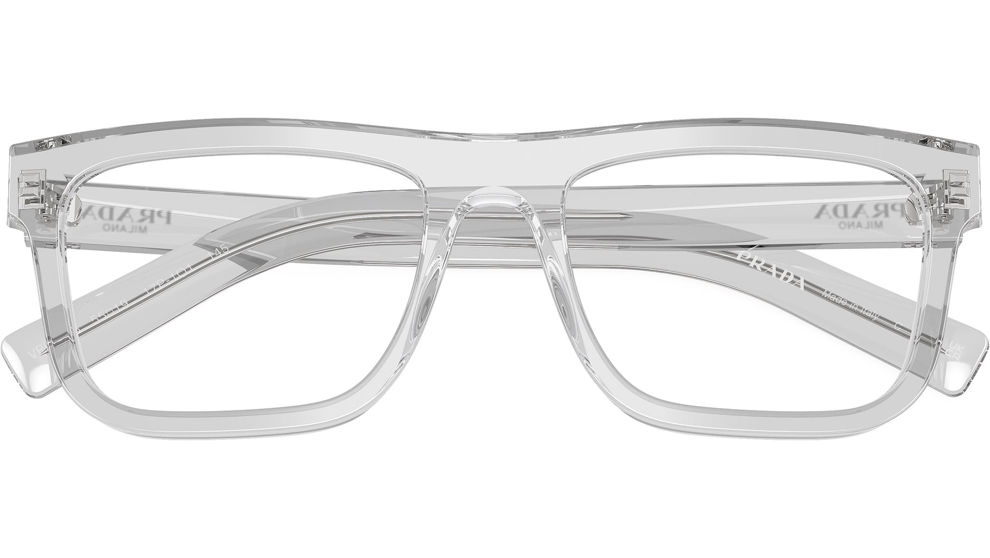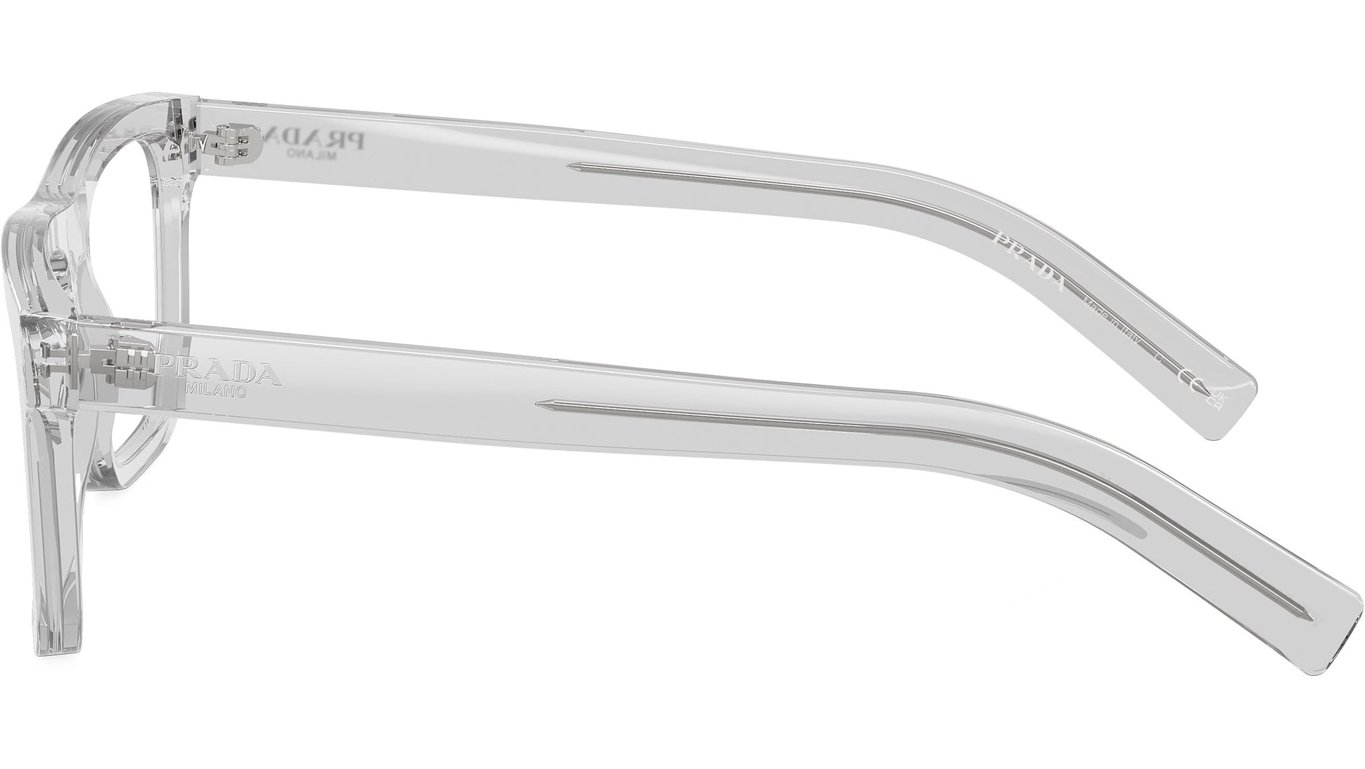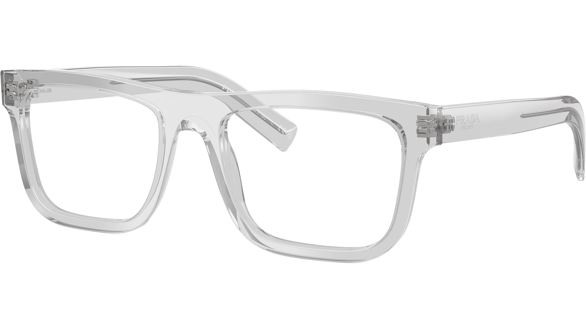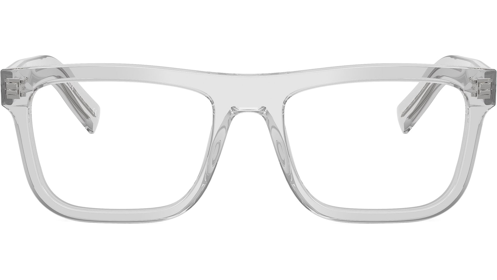 Prada PR C03V 17P1O1 glasses for men, featuring crystal grey d-frame acetate frame and demo lens. High bridge fit. Brand line: Essential. Style code: PRC03V. Color code: 17P1O1. Made in Italy. Authorized Prada online reseller. Your glasses will include the original case and accessories and are covered by a 12-month global warranty.
