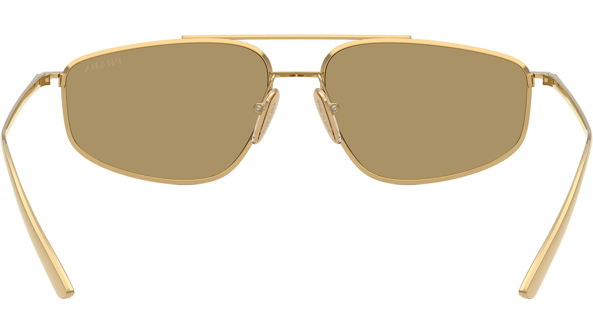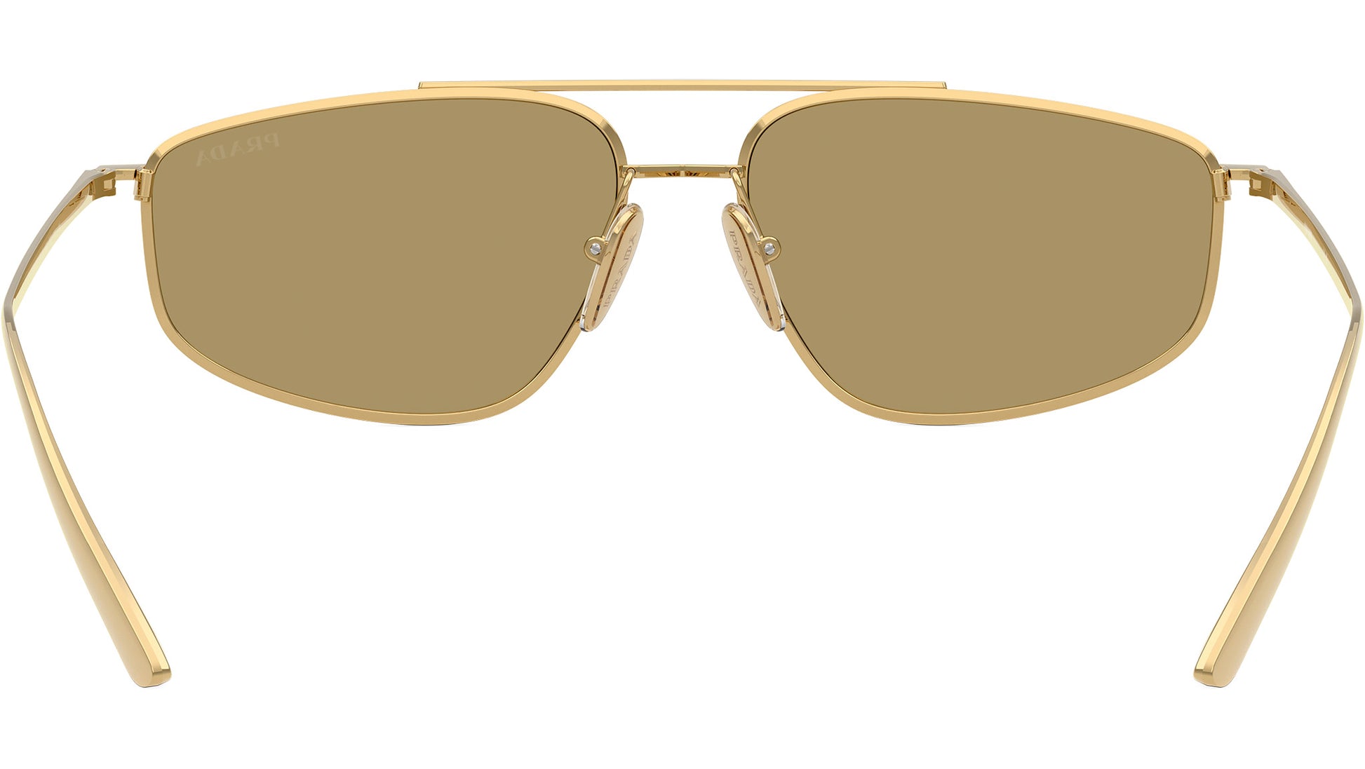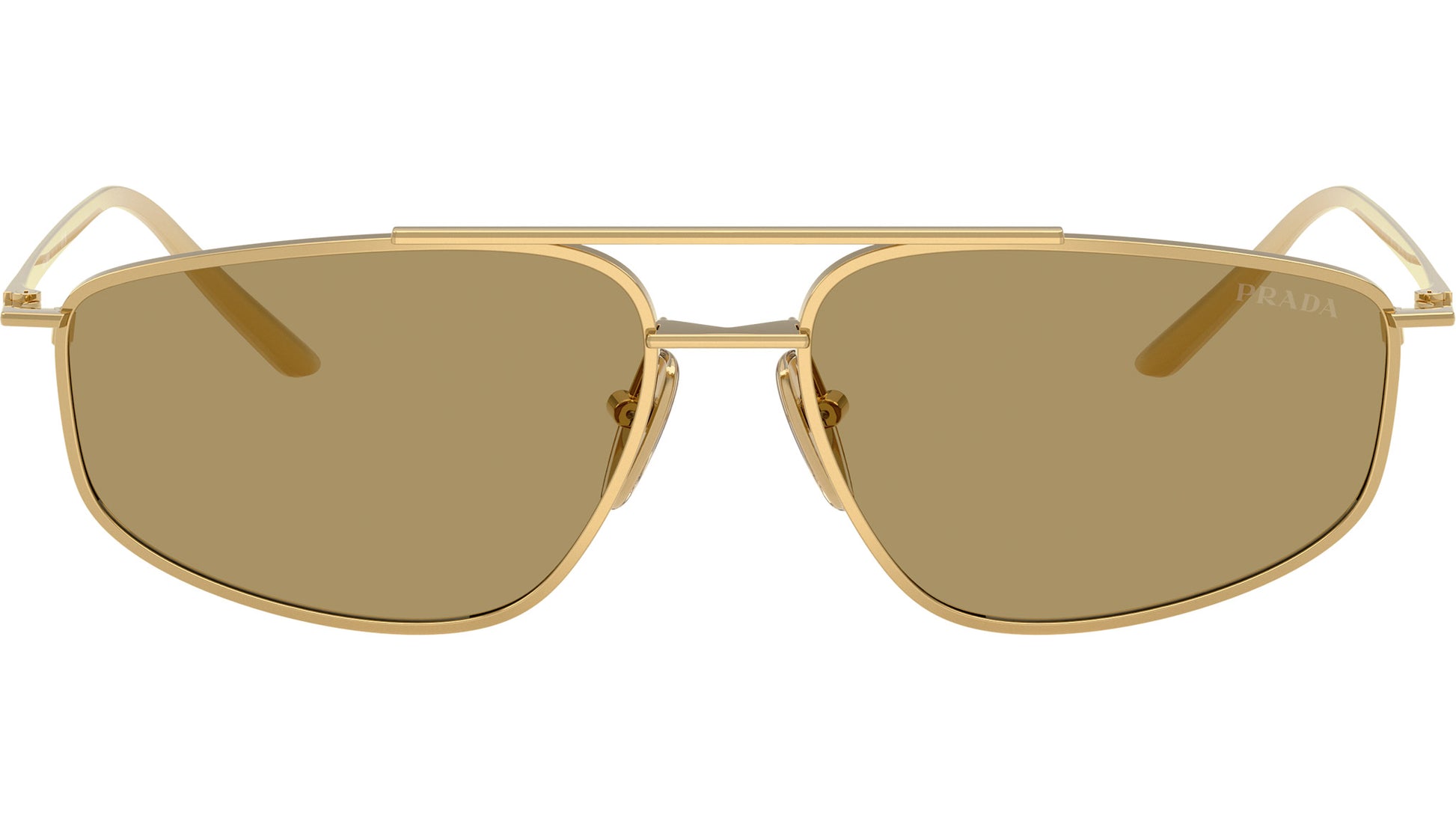 Prada PR C51S 5AK70G sunglasses for women, featuring gold d-frame metal frame and green olive bio polyamide lenses. Adjustable nosepads. Brand line: Essential. Style code: PRC51S. Color code: 5AK70G. Made in Italy. Authorized Prada online reseller. Your glasses will include the original case and accessories and are covered by a 12-month global warranty.