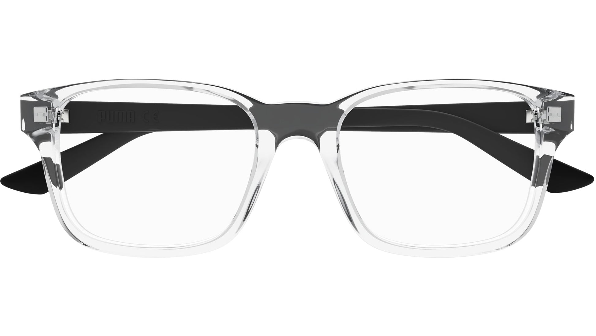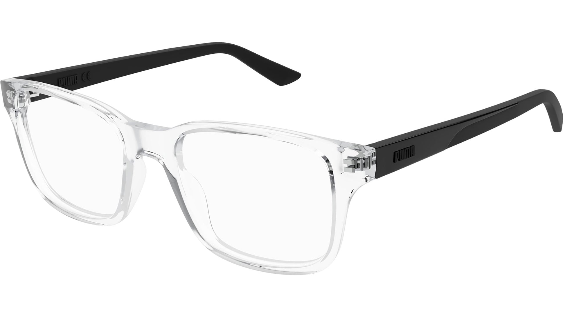 Puma Eyewear Sport optical collection model PU0434O color code 004 featuring shiny transparent crystal frame and demo lens.