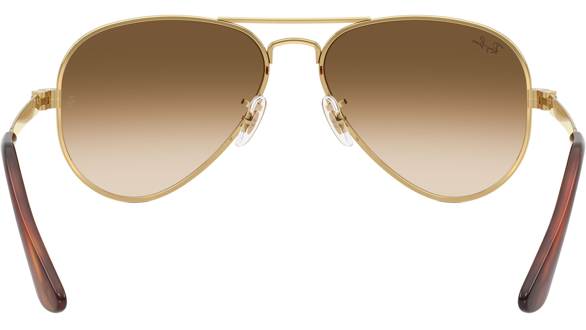 Ray-Ban Aviator Max RB3925 001/51 sunglasses for men and woman, featuring arista gold pilot metal frame and clear gradient brown glass lenses. Adjustable nosepads. Brand line: Evolution. Style code: 0RB3925. Color code: 001/51. Authorized Ray-Ban online reseller. Your glasses will include the original case and accessories and are covered by a 12-month global warranty.