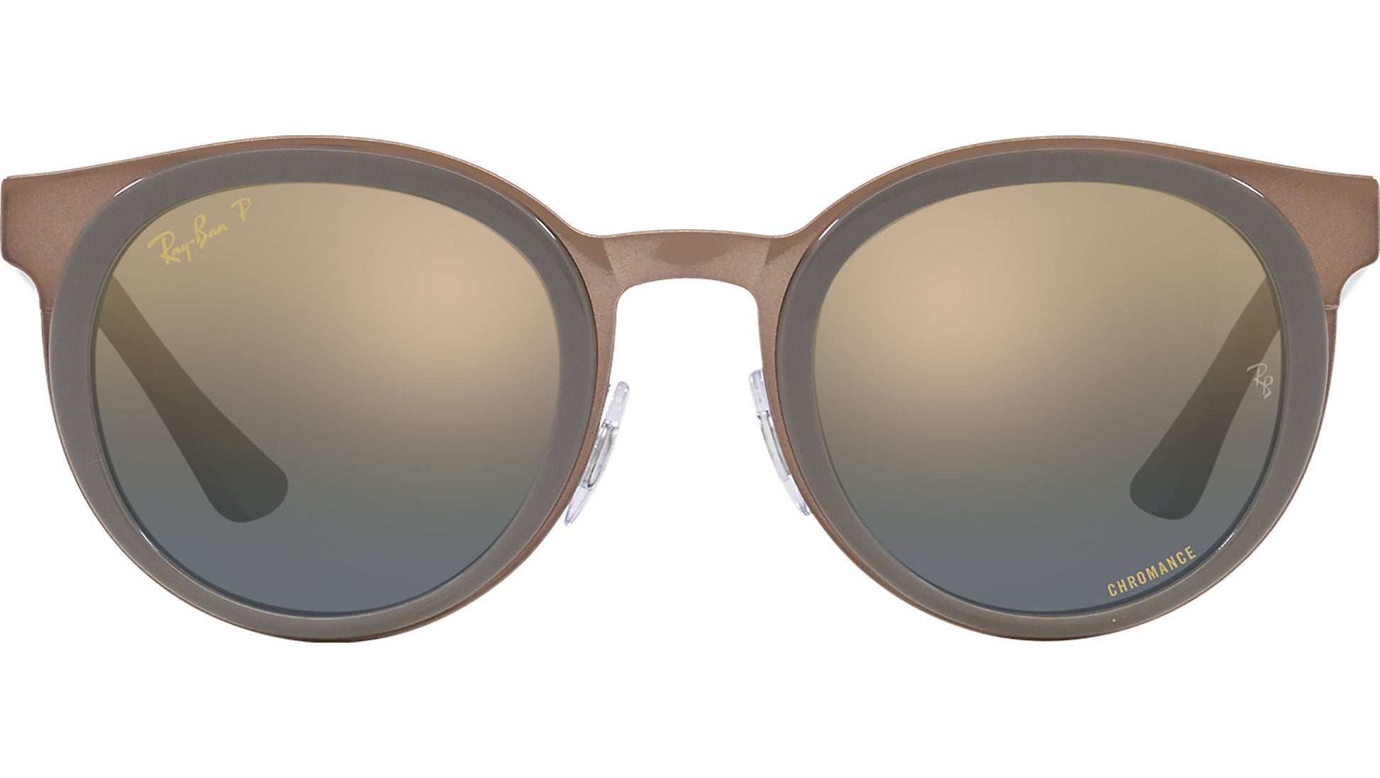 Ray-Ban Bonnie sunglasses model RB3710 color code 9260J0 featuring grey on copper full rim metal frame and polycarbonate grey / blue lenses. Ray-Ban stands for timeless style, simplicity, and freedom of expression. As a leading eyewear brand for generations, Ray-Ban has been at the forefront of cultural change, symbolizing individuality and personality. Since its debut with the iconic Aviator, originally created for US aviation pilots, Ray-Ban has been worn by celebrities and public figures worldwide, becoming a symbol of style and sophistication.