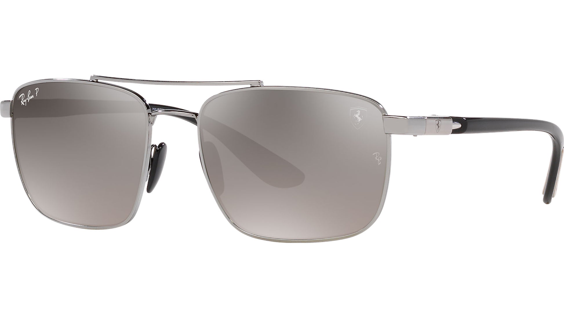 Ray-Ban Ferrari line RB3715M sunglasses model RB3715M color code F0845J featuring gunmetal full rim stainless steel frame and polycarbonate grey lenses. Ray-Ban stands for timeless style, simplicity, and freedom of expression. As a leading eyewear brand for generations, Ray-Ban has been at the forefront of cultural change, symbolizing individuality and personality. Since its debut with the iconic Aviator, originally created for US aviation pilots, Ray-Ban has been worn by celebrities and public figures worldwide, becoming a symbol of style and sophistication.