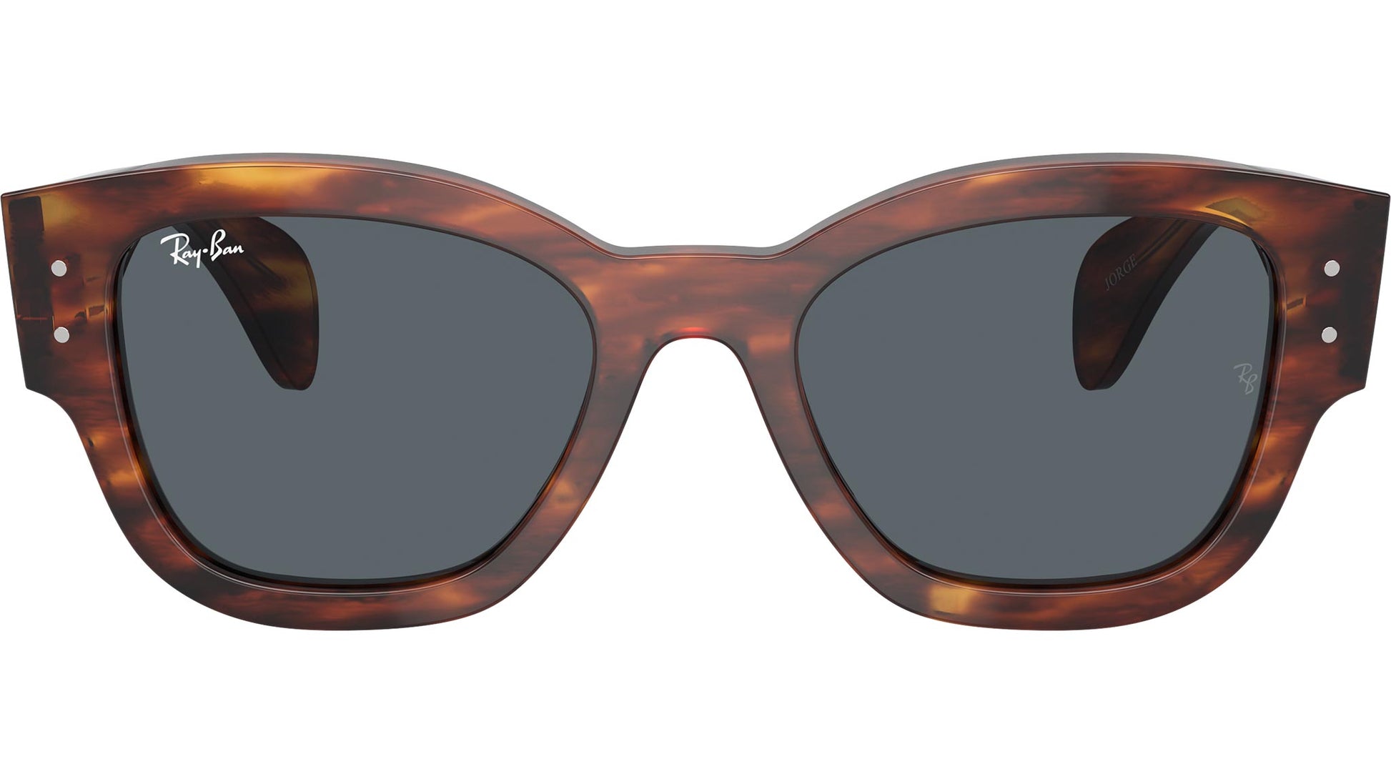 Ray-Ban Jorge sunglasses model RB7681S color code 954/R5 featuring striped havana full rim acetate frame and glass blue lenses. Ray-Ban stands for timeless style, simplicity, and freedom of expression. As a leading eyewear brand for generations, Ray-Ban has been at the forefront of cultural change, symbolizing individuality and personality. Since its debut with the iconic Aviator, originally created for US aviation pilots, Ray-Ban has been worn by celebrities and public figures worldwide, becoming a symbol of style and sophistication.