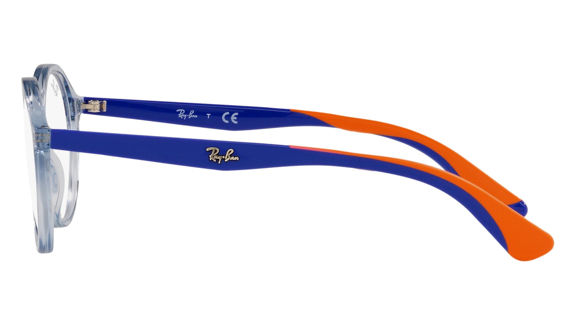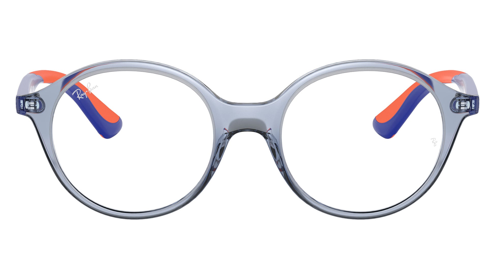 Ray-Ban Kids RY1606 trasparent light blu acetate eyeglasses, color code 3860. Full Rim round frame shape with demo lens. Authorised Ray-Ban Reseller. Includes genuine case.