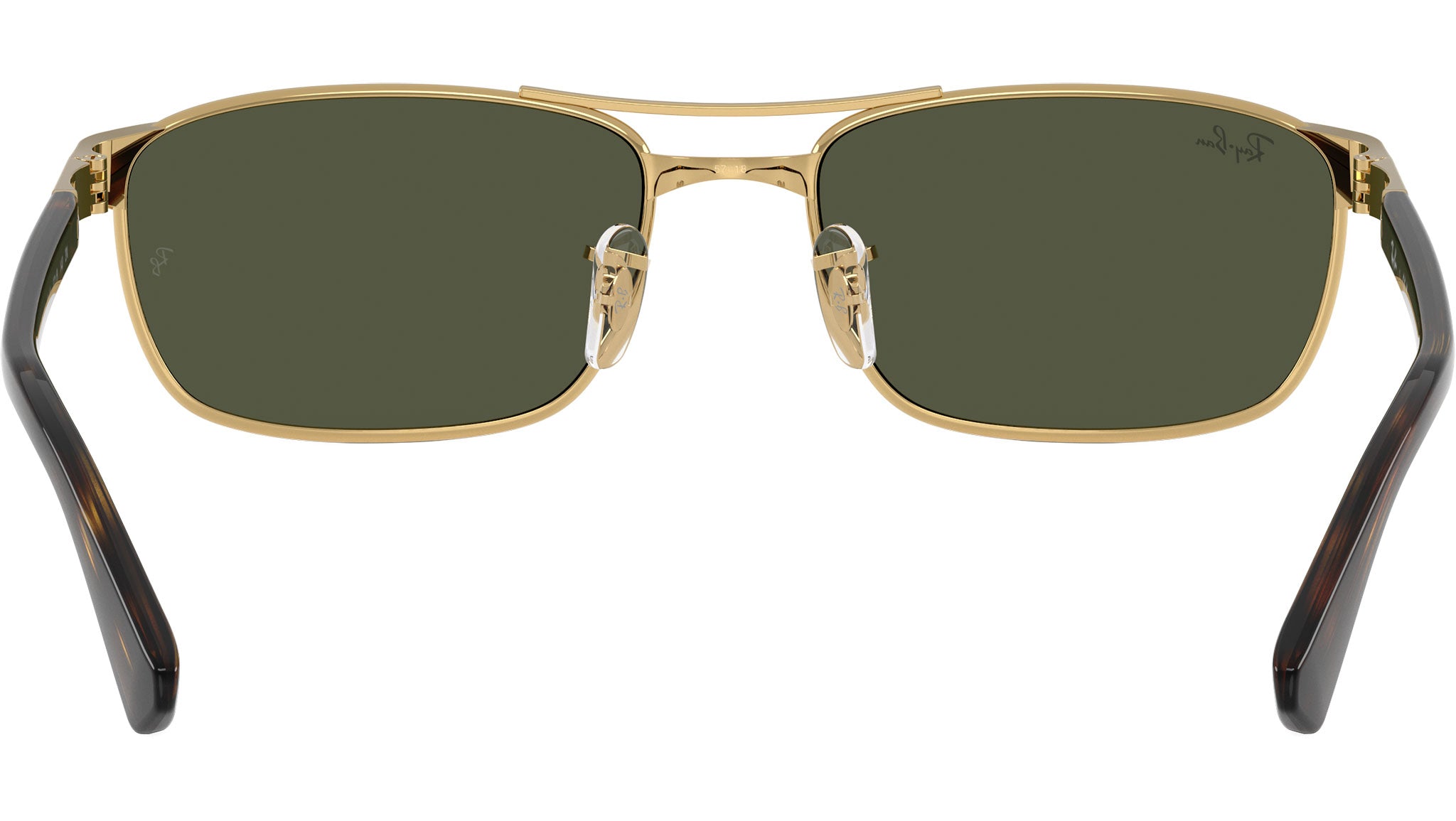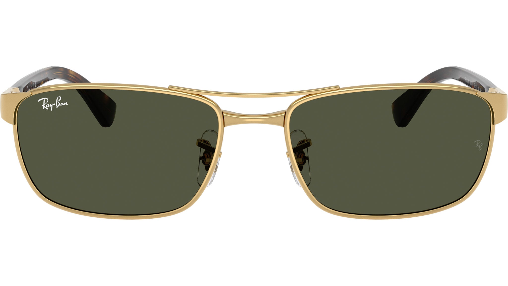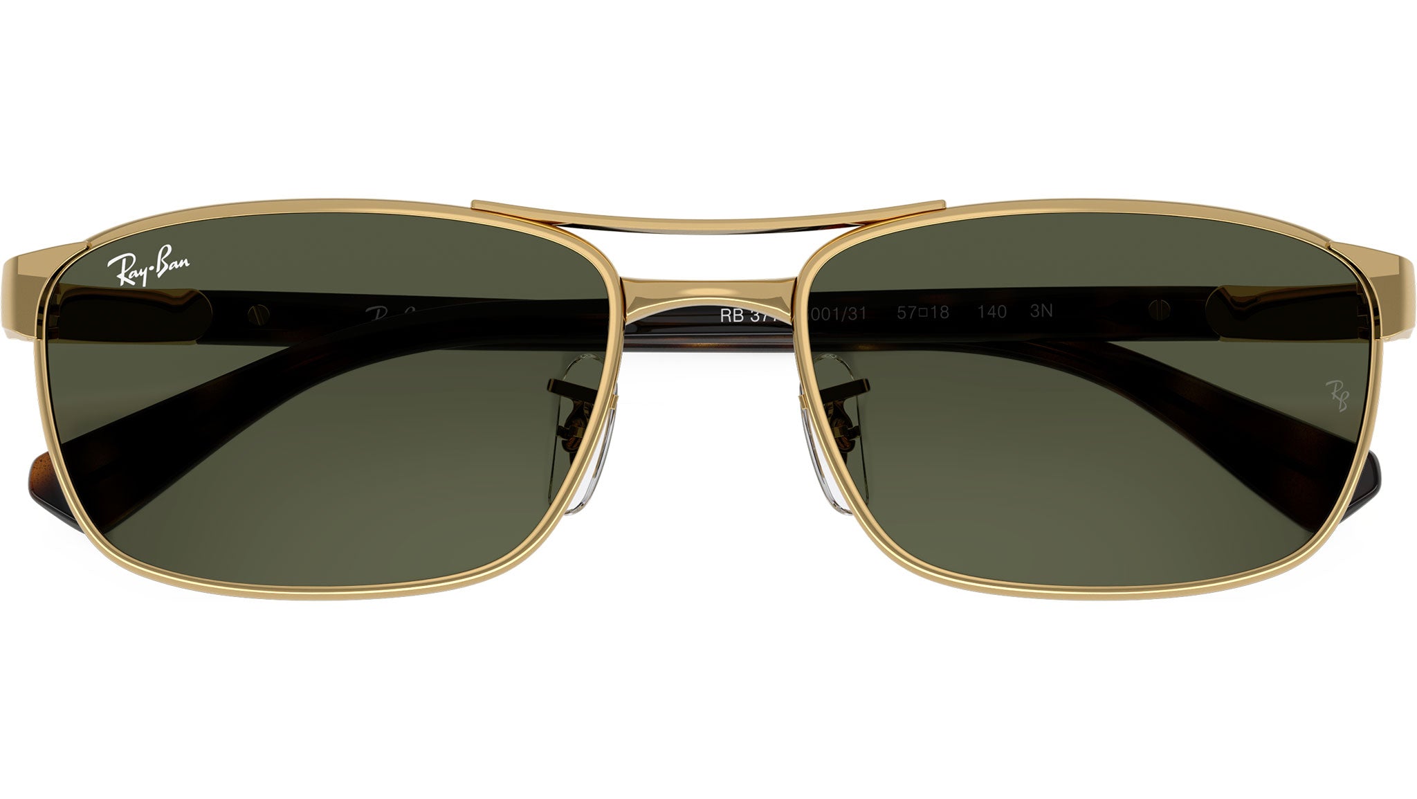 Ray-Ban RB3778 001/31 sunglasses for men and woman, featuring arista gold geometric metal frame and green glass lenses. Brand line: Essentials. Style code: 0RB3778. Color code: 001/31. Authorized Ray-Ban online reseller. Your glasses will include the original case and accessories and are covered by a 12-month global warranty.