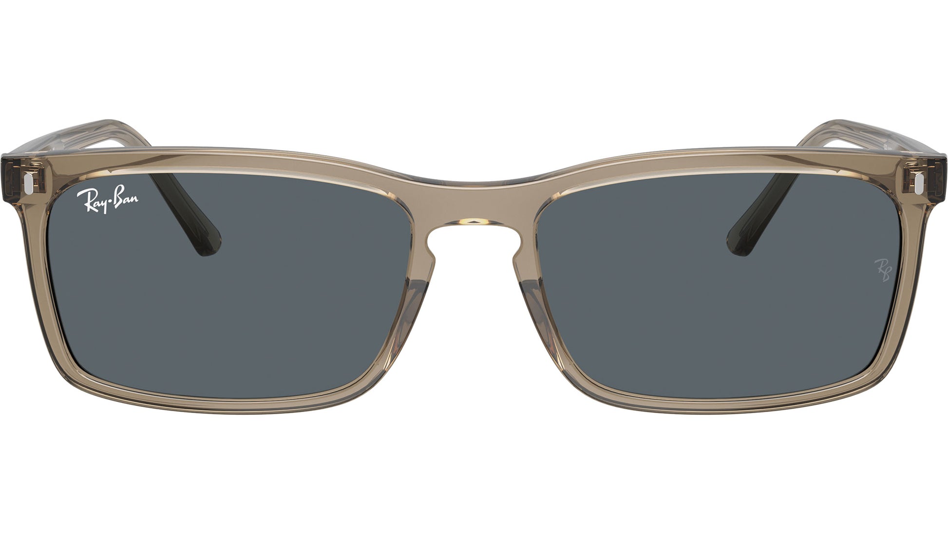 Ray-Ban Core line sunglasses model RB4435 color code 6765R5 featuring transparent brown full rim propionate frame and glass blue lenses. Ray-Ban stands for timeless style, simplicity, and freedom of expression. As a leading eyewear brand for generations, Ray-Ban has been at the forefront of cultural change, symbolizing individuality and personality. Since its debut with the iconic Aviator, originally created for US aviation pilots, Ray-Ban has been worn by celebrities and public figures worldwide, becoming a symbol of style and sophistication.