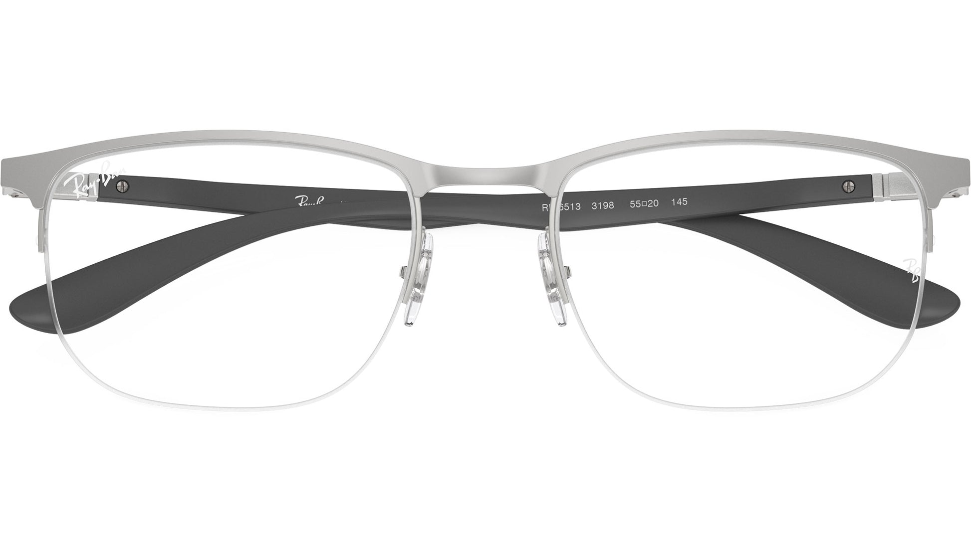 Ray-Ban RB6513 Optics RB6513 3198 glasses for men and woman, featuring matte silver on silver geometric metal frame and demo lens. Adjustable nosepads. Brand line: Performance. Style code: 0RX6513. Color code: 3198. Authorized Ray-Ban online reseller. Your glasses will include the original case and accessories and are covered by a 12-month global warranty.
