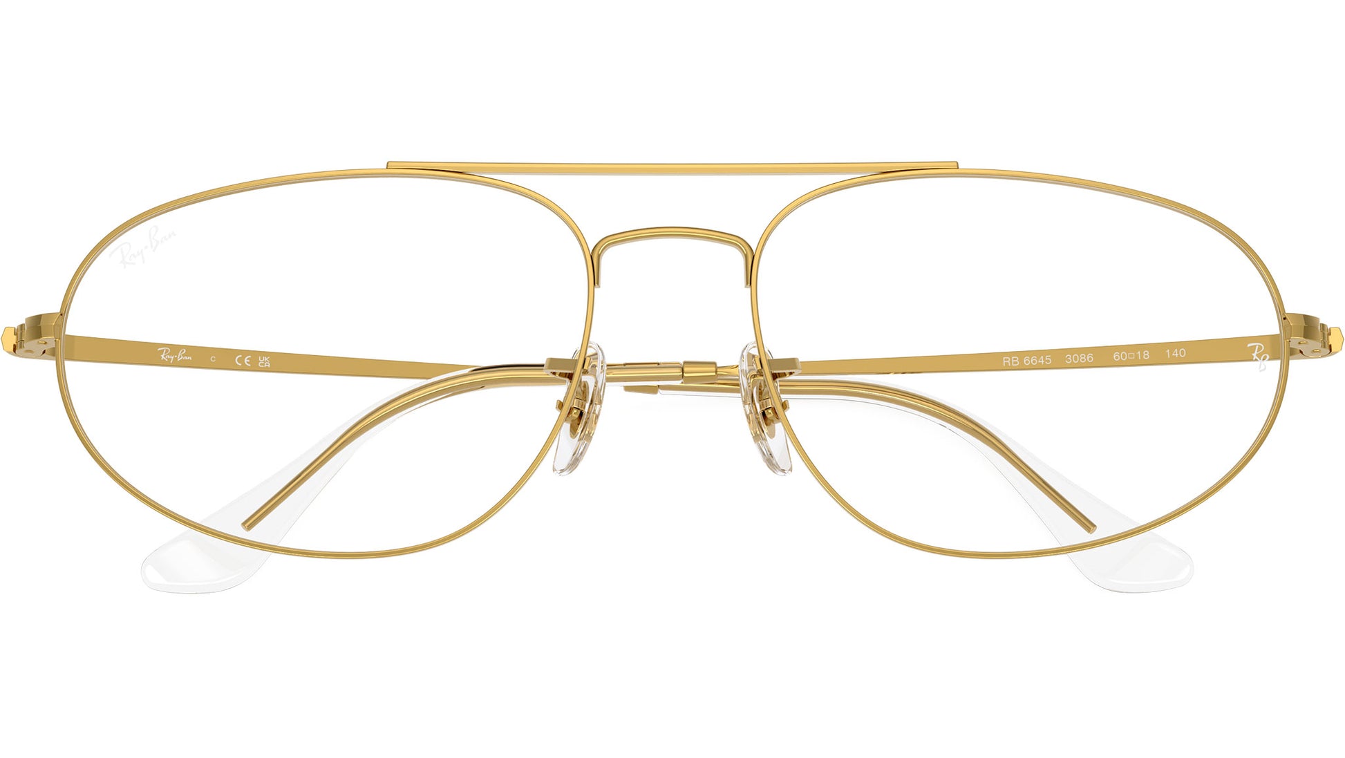 Ray-Ban RB6645 Optics RB6645 3086 glasses for men and woman, featuring legend gold geometric metal frame and demo lens. Adjustable nosepads. Brand line: Evolution. Style code: 0RX6645. Color code: 3086. Authorized Ray-Ban online reseller. Your glasses will include the original case and accessories and are covered by a 12-month global warranty.