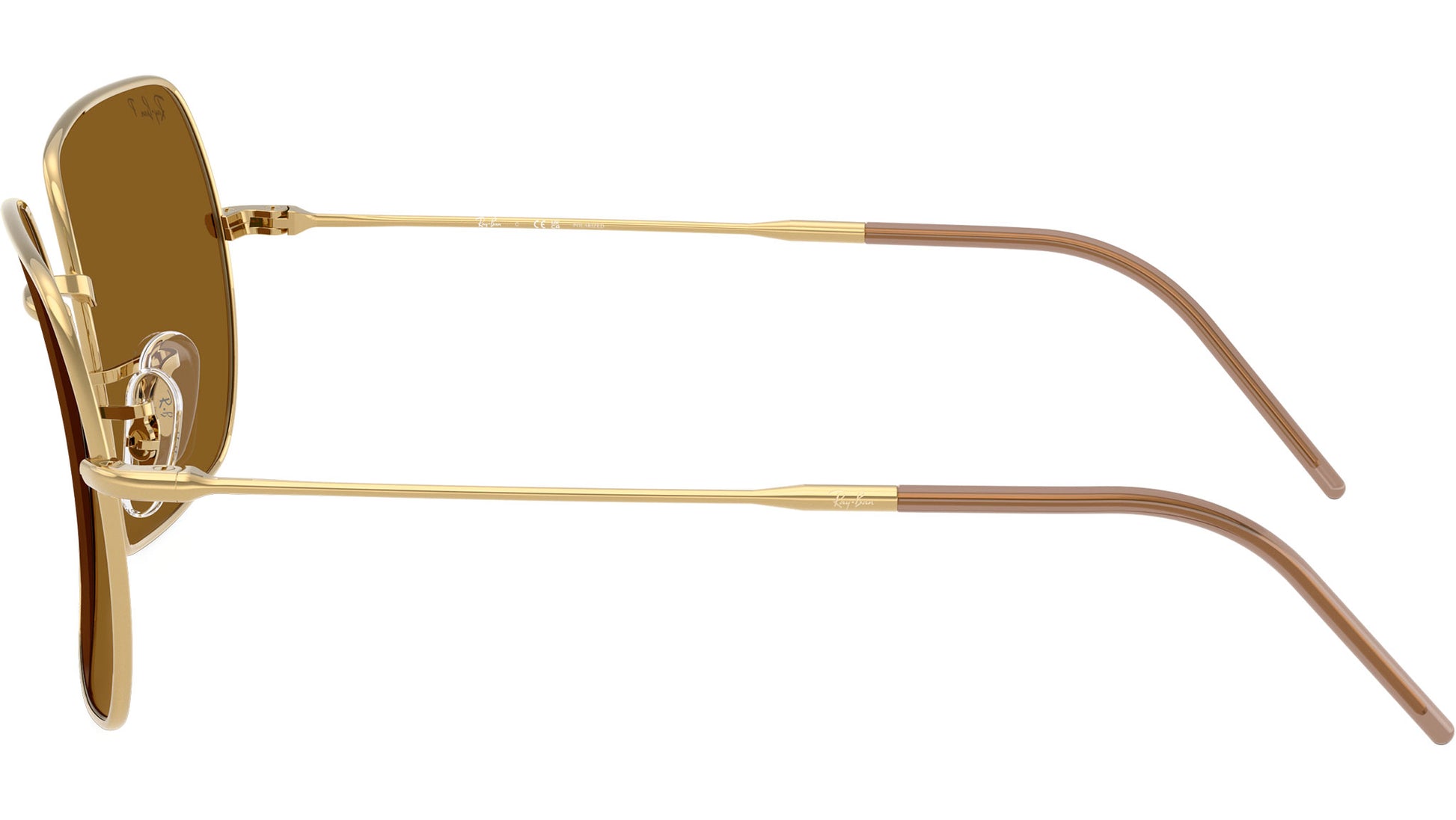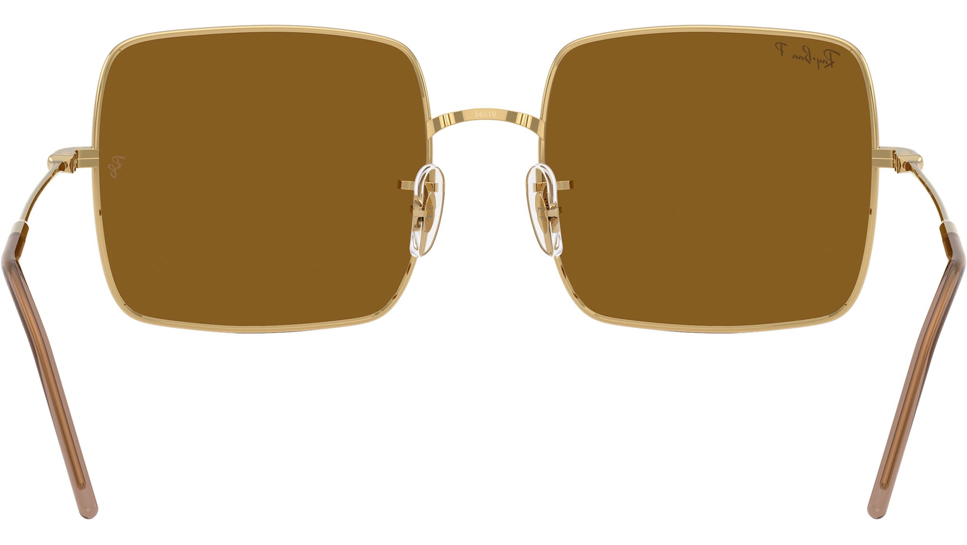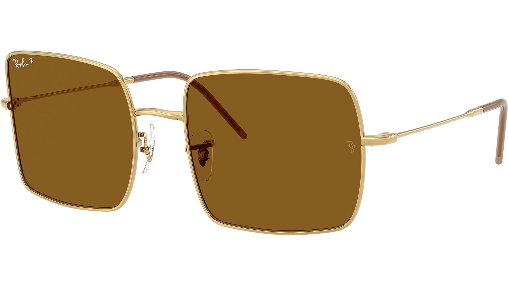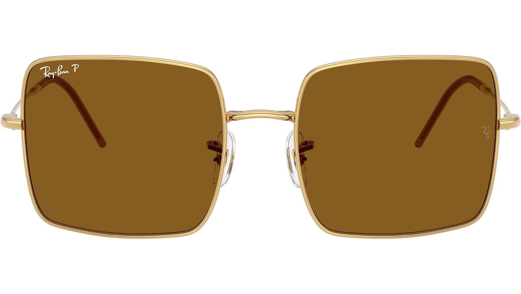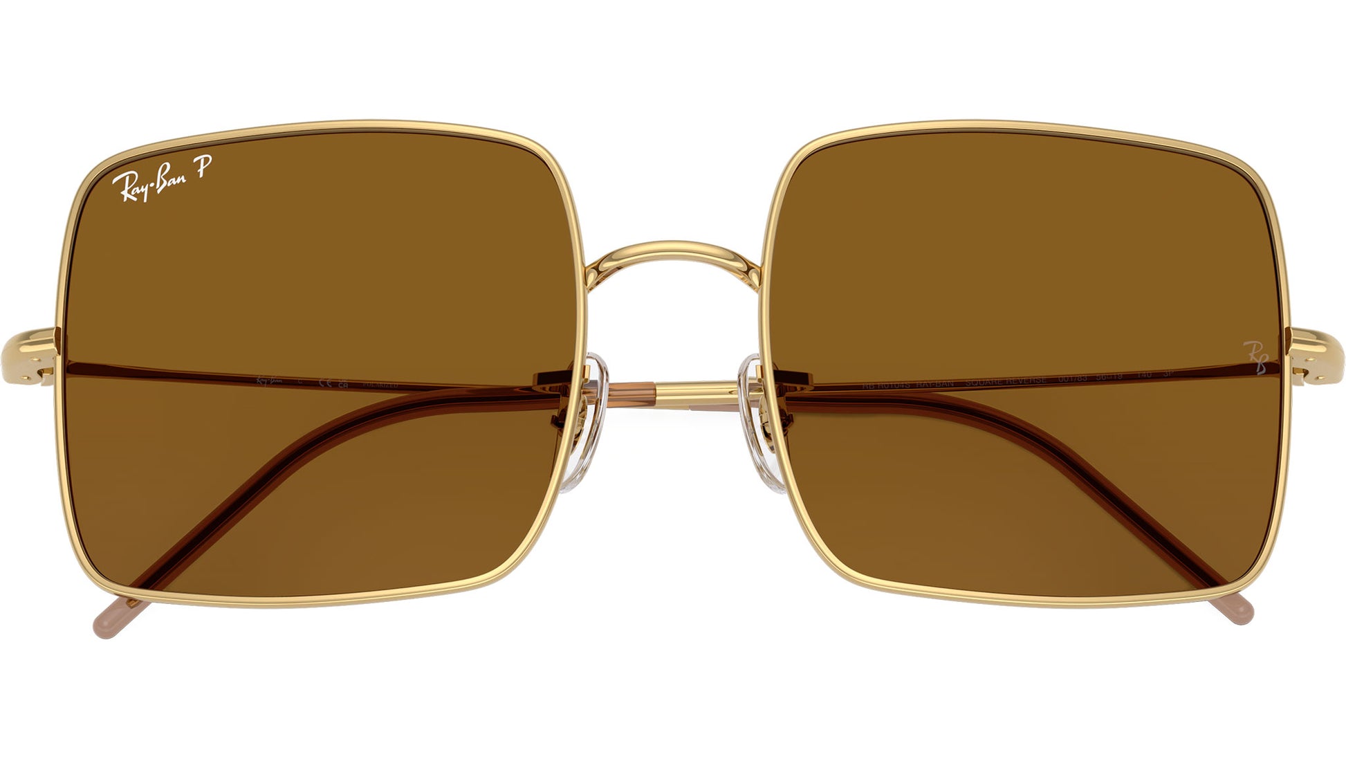 Ray-Ban Square Reverse RBR0104S 001/83 sunglasses for women, featuring arista gold squared metal frame and dark brown polarized polycarbonate lenses. Adjustable nosepads. Brand line: Evolution. Style code: 0RBR0104S. Color code: 001/83. Authorized Ray-Ban online reseller. Your glasses will include the original case and accessories and are covered by a 12-month global warranty.