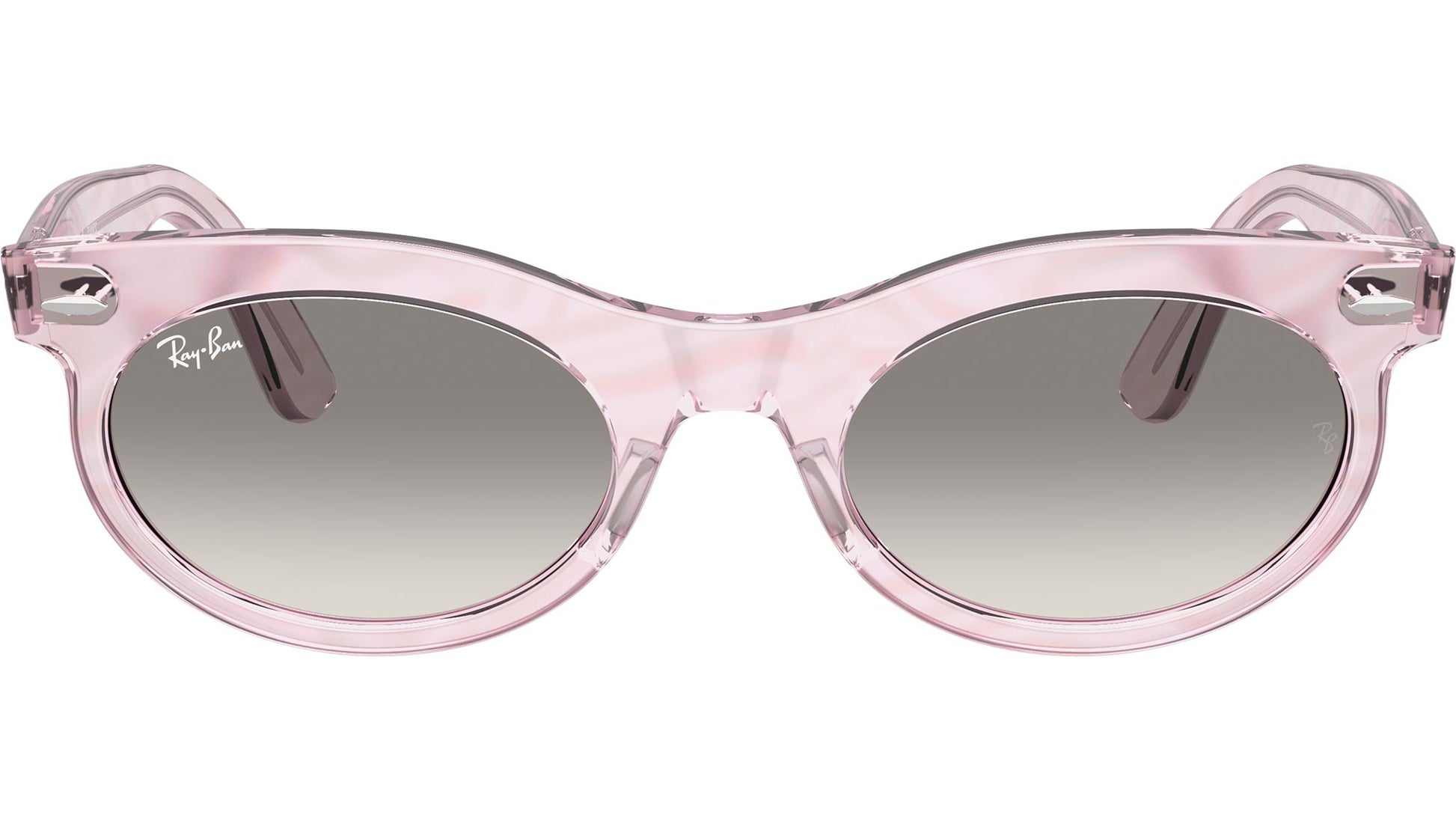 Ray-Ban Wayfarer Oval sunglasses model RB2242 color code 138432 featuring photo waves purple full rim propionate frame and glass clear grey lenses. Ray-Ban stands for timeless style, simplicity, and freedom of expression. As a leading eyewear brand for generations, Ray-Ban has been at the forefront of cultural change, symbolizing individuality and personality. Since its debut with the iconic Aviator, originally created for US aviation pilots, Ray-Ban has been worn by celebrities and public figures worldwide, becoming a symbol of style and sophistication.