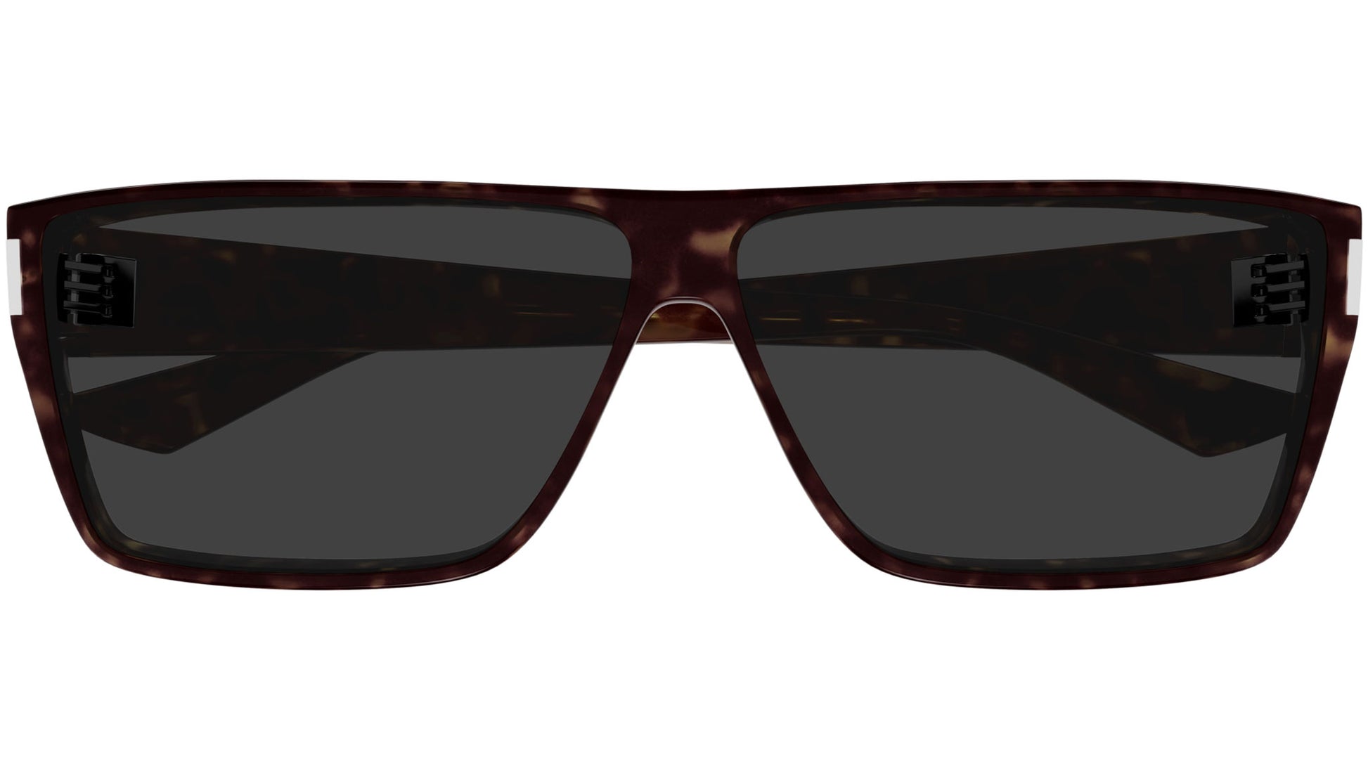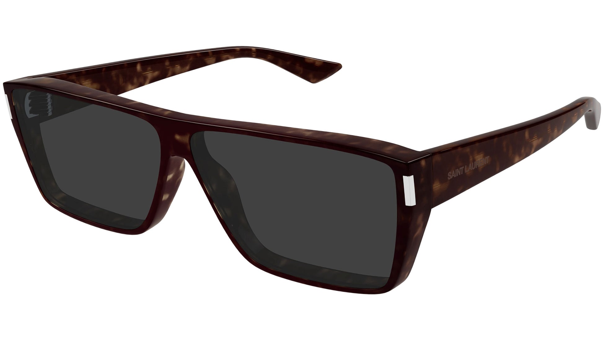 Saint Laurent SL 757 002 sunglasses for men and woman, featuring shiny dark havana rectangular injection frame and solid grey bio nylon lenses. Brand line: Corner Angle. Style code: SL 757. Color code: 002. Made in Japan. Authorized Saint Laurent online reseller. Your glasses will include the original case and accessories and are covered by a 12-month global warranty.