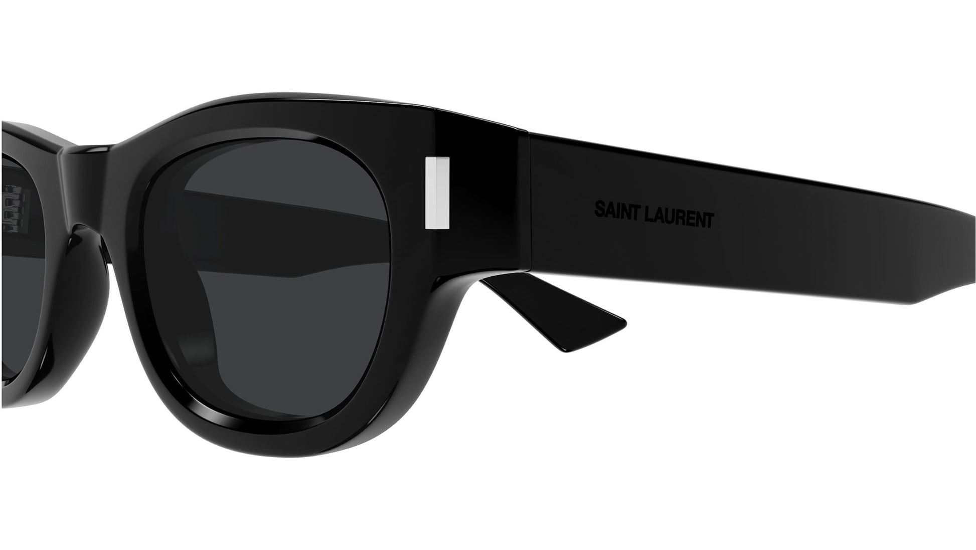 Saint Laurent SL 761 001 sunglasses for men and woman, featuring shiny solid black panthos recycled acetate frame and solid black bio nylon lenses. Brand line: Corner Angle. Style code: SL 761. Color code: 001. Made in Italy. Authorized Saint Laurent online reseller. Your glasses will include the original case and accessories and are covered by a 12-month global warranty.