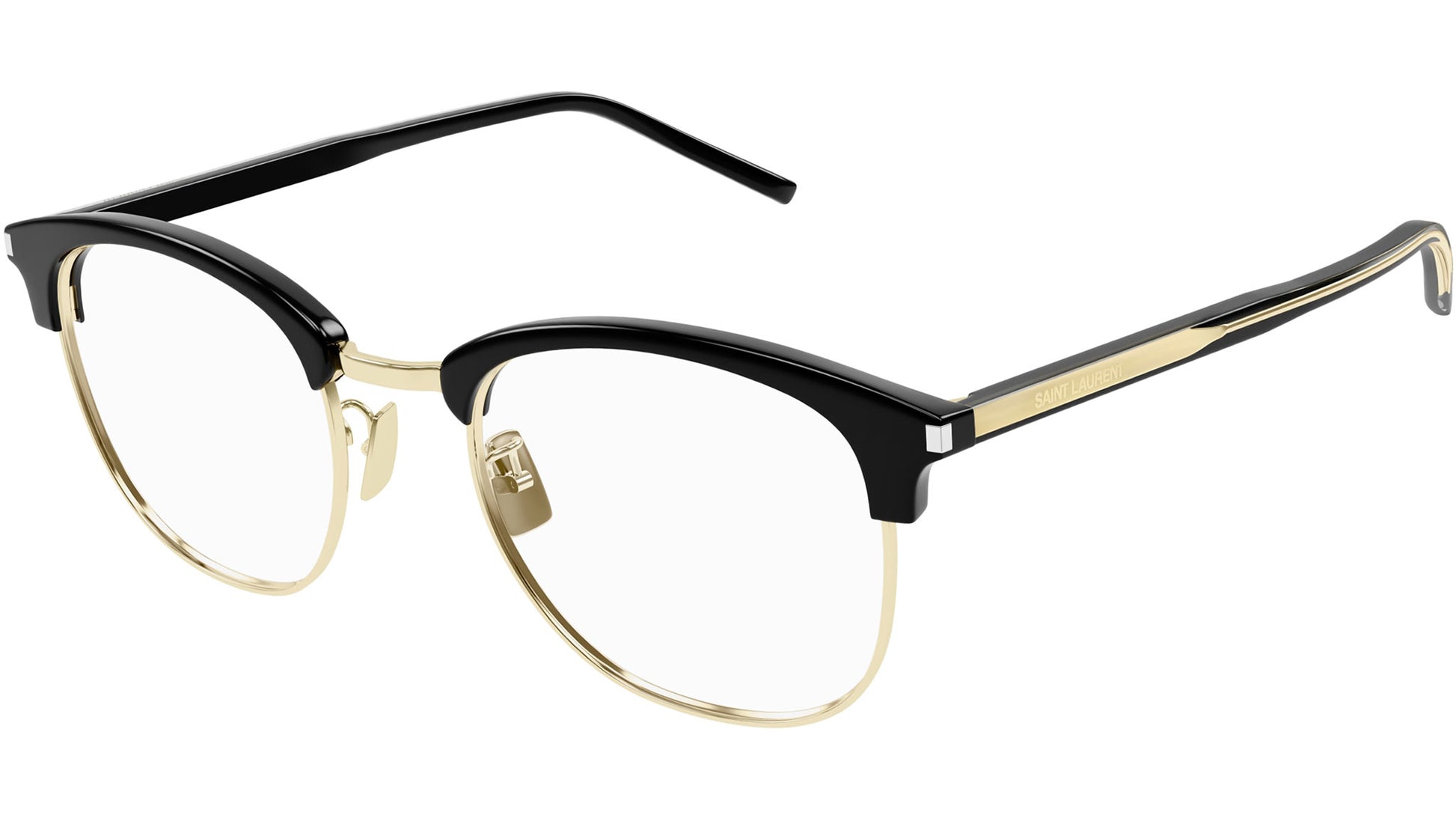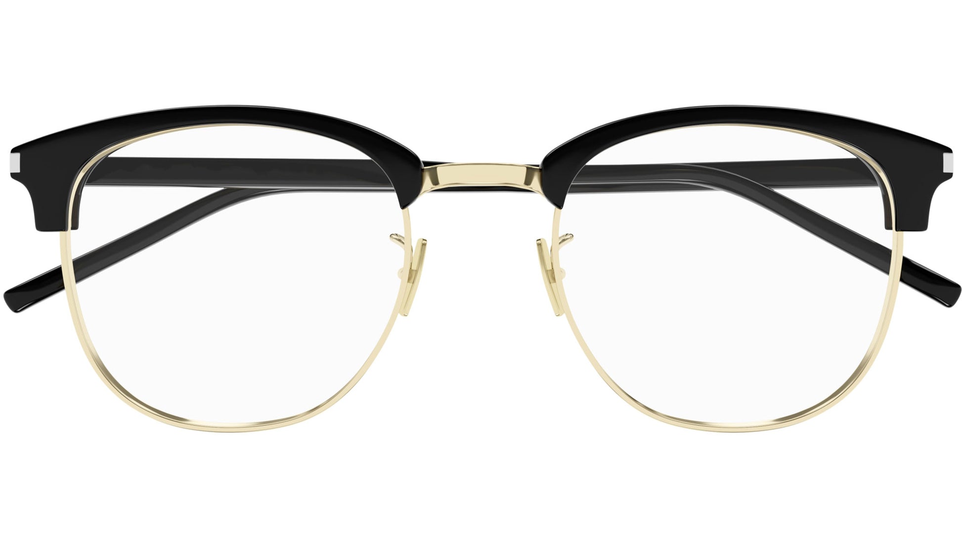 Saint Laurent SL 779 001 glasses for men and woman, featuring shiny solid black(shiny light gold oval recycled acetate frame and demo lenses. Brand line: Corner Angle. Style code: SL 779. Color code: 001. Made in Japan. Authorized Saint Laurent online reseller. Your glasses will include the original case and accessories and are covered by a 12-month global warranty.