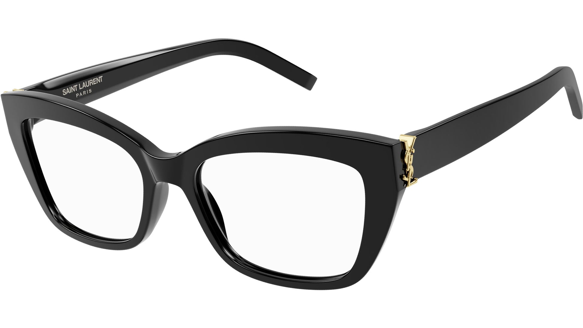 Saint Laurent Monogram optical collection model SL M117 001 featuring shiny solid black frame and black temple.