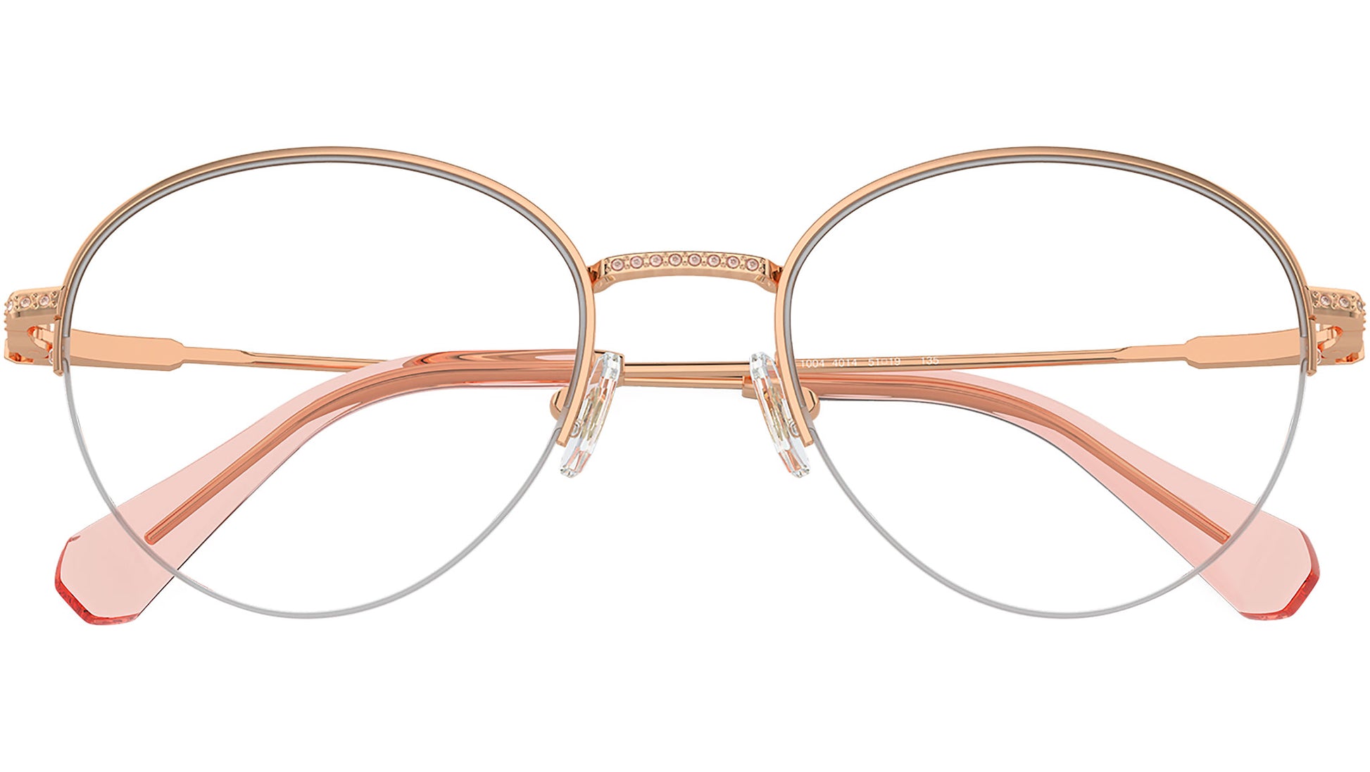 Swarovski optical frame for women model 1004 featuring rose gold semi rim metal frame and base 4 demo lens. Adjustable nosepads. Frame line: Science of Elegance. Brand code: 0SK1004. Color code: 4014. Authorised Swarovski Eyewear Online Reseller. Your glasses will come including the original case and accessories and will be covered by 12 month global warranty.