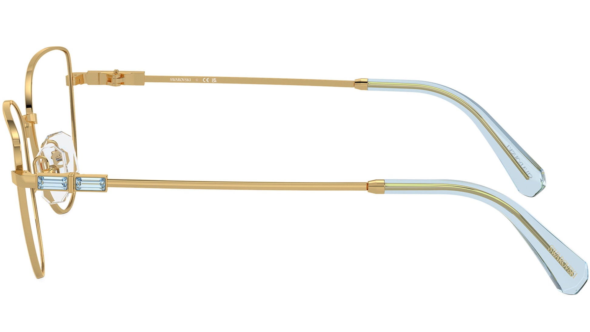 Swarovski optical frame for women model 1007 featuring gold full rim metal frame and base 4 demo lens. Adjustable nosepads. Frame line: Science of Facets. Brand code: 0SK1007. Color code: 4021. Authorised Swarovski Eyewear Online Reseller. Your glasses will come including the original case and accessories and will be covered by 12 month global warranty.