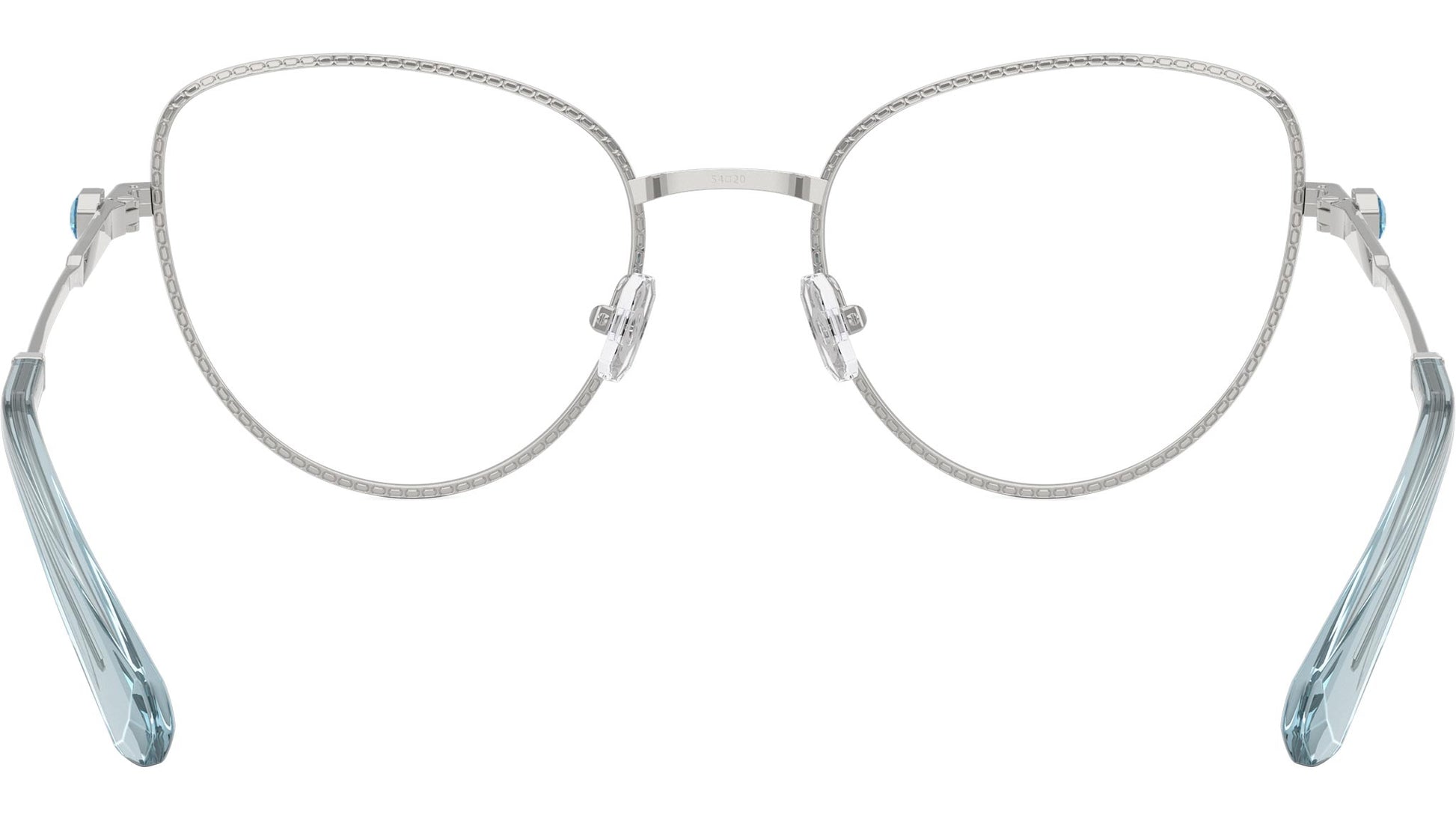 Swarovski SK1022 4020 glasses for women, featuring silver cat eye metal frame and demo lenses. Adjustable nosepads. Brand line: Science of Facets. Style code: SK1022. Color code: 4020. Authorized Swarovski online reseller. Your glasses will include the original case and accessories and are covered by a 12-month global warranty.