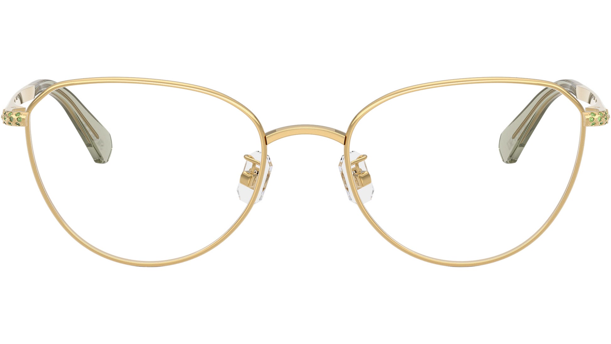 Swarovski SK1029D 4017 glasses for women, featuring gold round metal frame and demo lenses. Low bridge fit. Brand line: Science of Facets. Style code: SK1029D. Color code: 4017. Authorized Swarovski online reseller. Your glasses will include the original case and accessories and are covered by a 12-month global warranty.