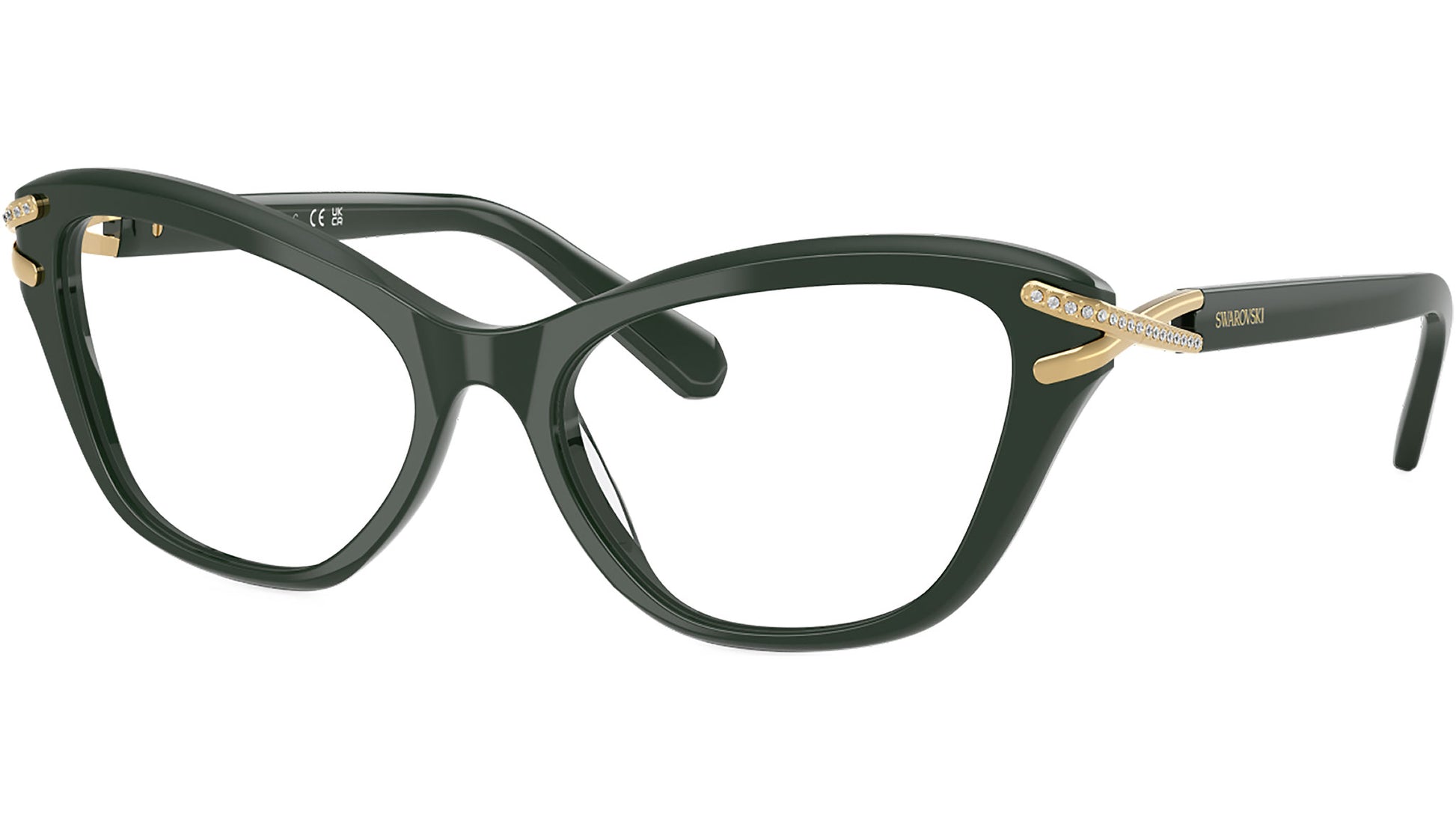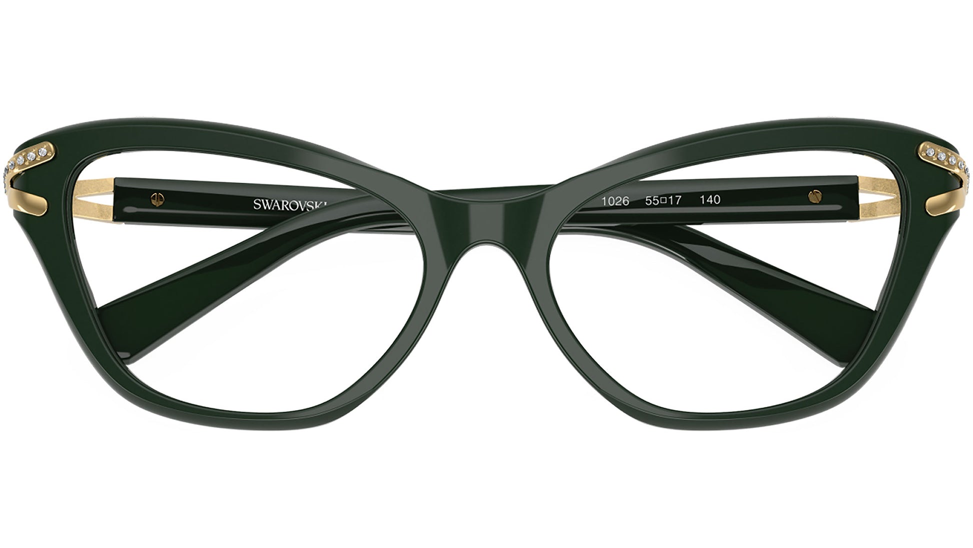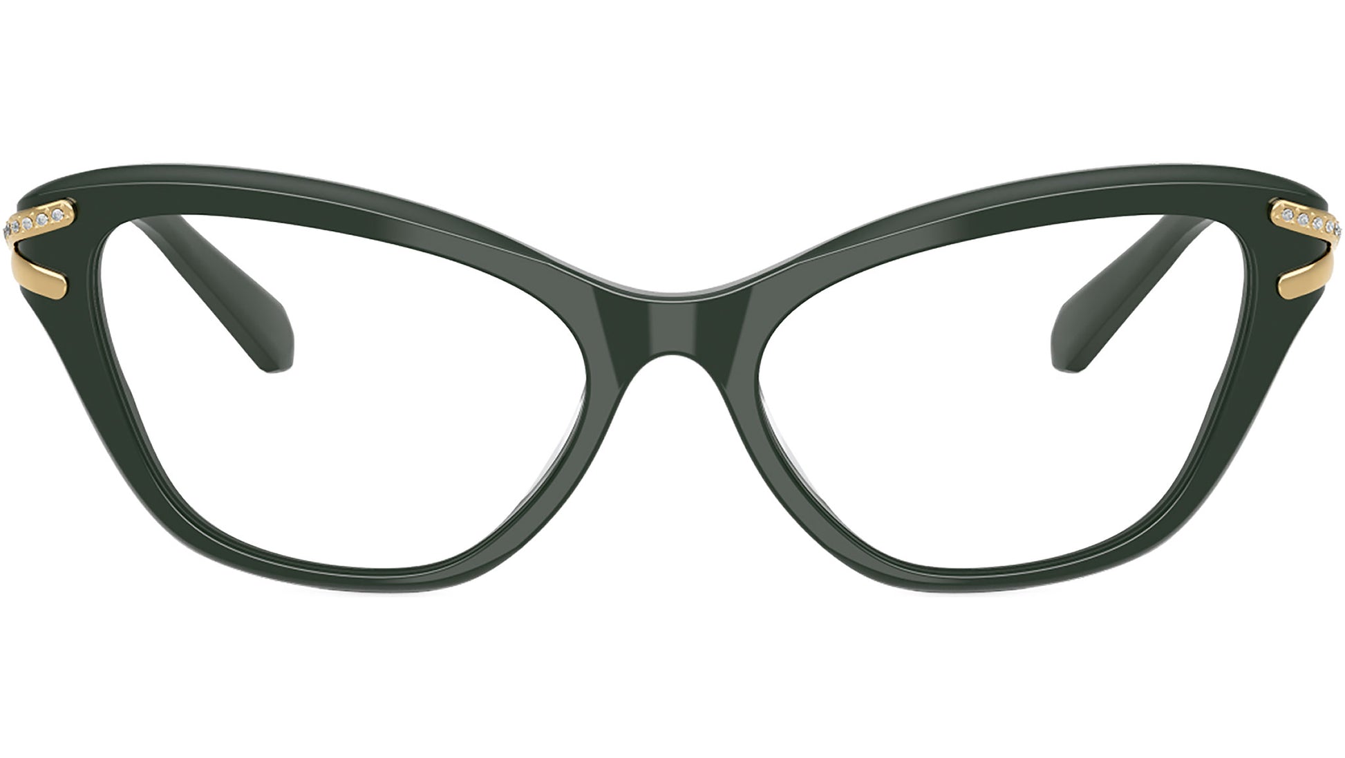 Swarovski optical frame for women model 2031 featuring dark green full rim acetate frame and base 4 demo lens. High bridge fit. Frame line: Science of Elegance. Brand code: 0SK2031. Color code: 1026. Authorised Swarovski Eyewear Online Reseller. Your glasses will come including the original case and accessories and will be covered by 12 month global warranty.